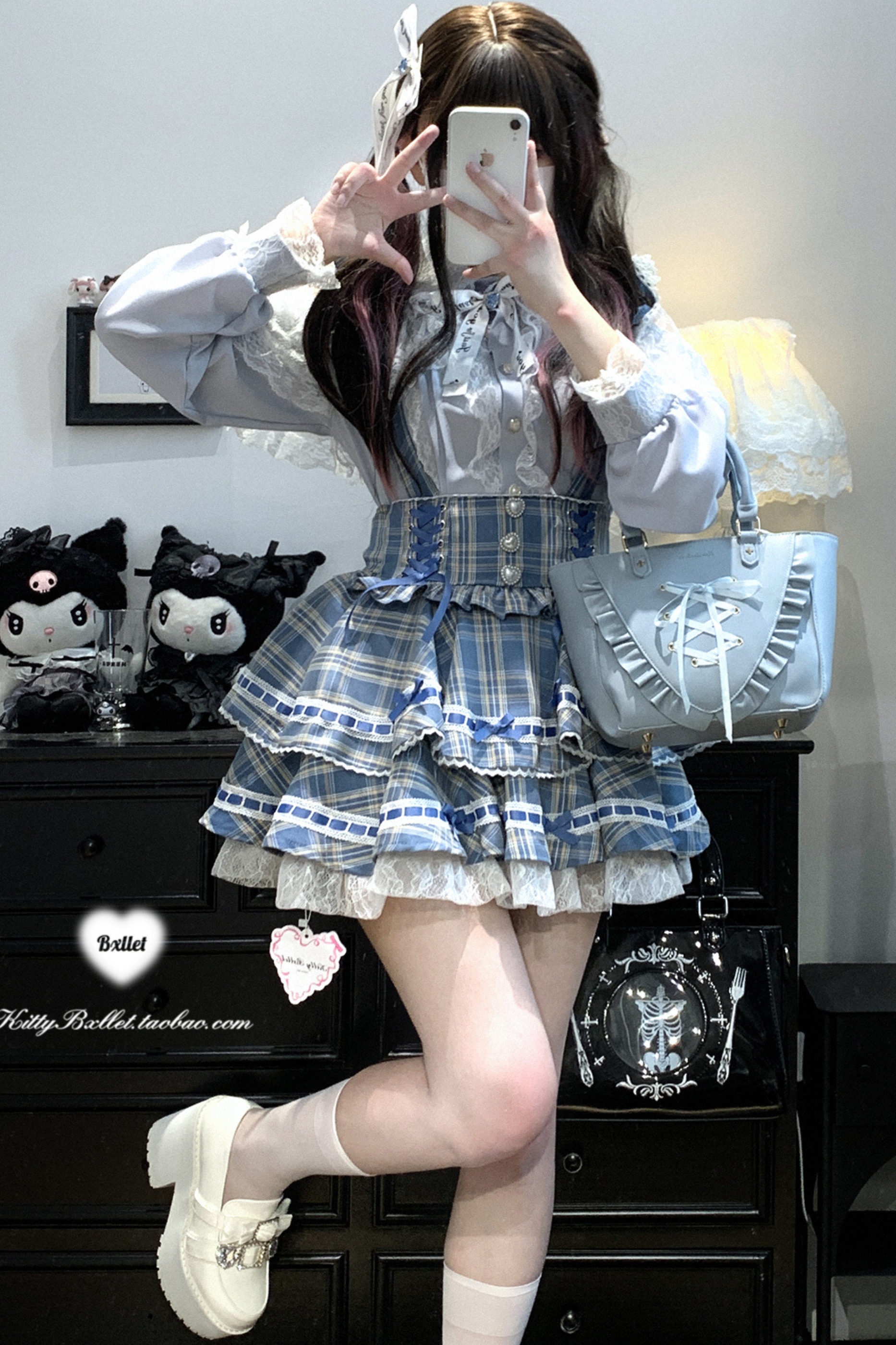 レースアップサスペンダーリボンスカートアイテム予約販売フリル