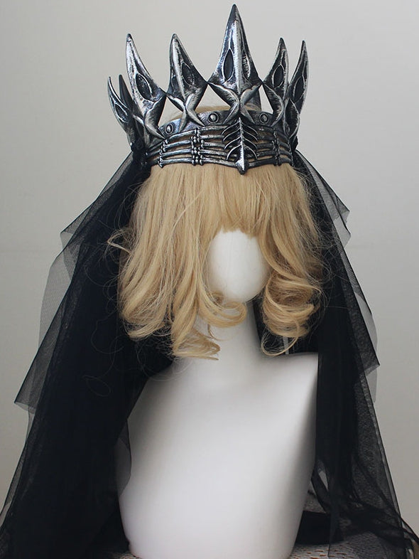 この美しいレースベールのブラックゴシッククラウンは、どんな装いにも優雅さと魅力を添えます。精巧なレースデザインと繊細なベールが、女王にふさわしい美しい装いを演出します。特別な日にも、普段の装いに遊び心をプラスするのにも最適です。