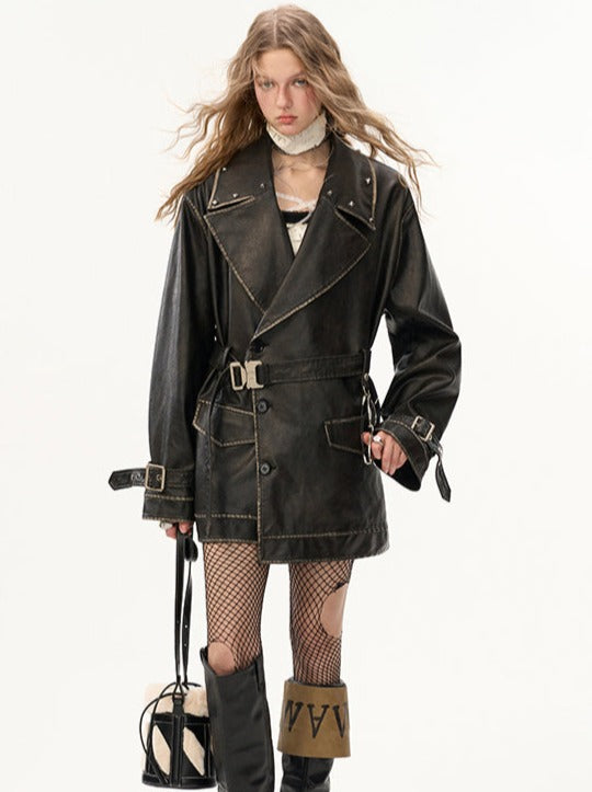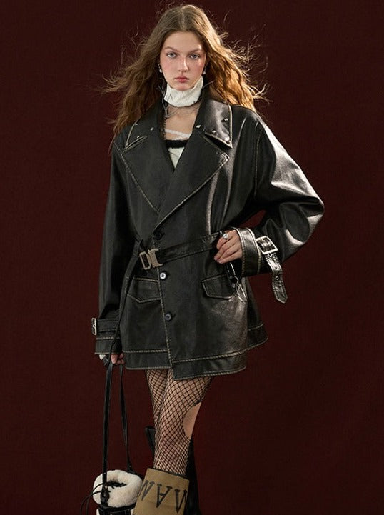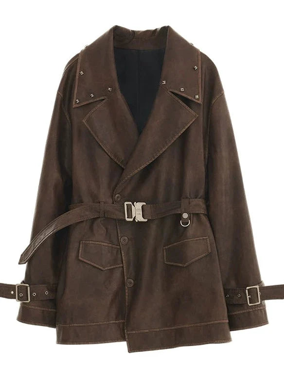 スタイリッシュなストラップウエストと洗練されたデザインが魅力のこの魅力的なレザージャケットは、ワードローブに甘さとエレガンスを添えてくれます。このウィンドブレーカーで暖かく、ファッショナブルに過ごしましょう。