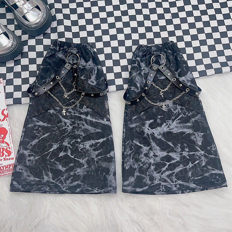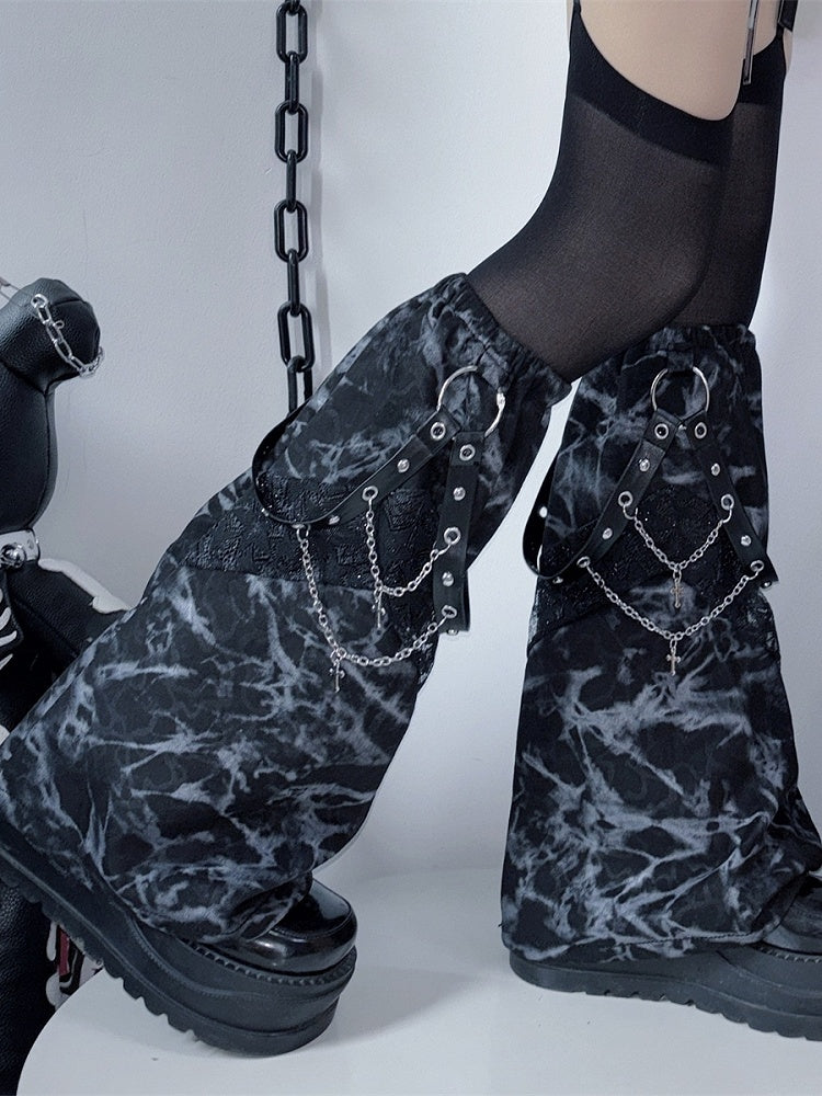 レッグ ブラック/ブラウン デザイン クロス ウェイストランド パンク ウォーマー タイダイ チャーム