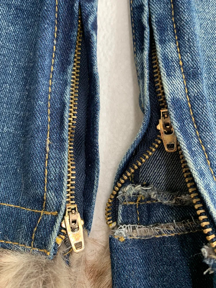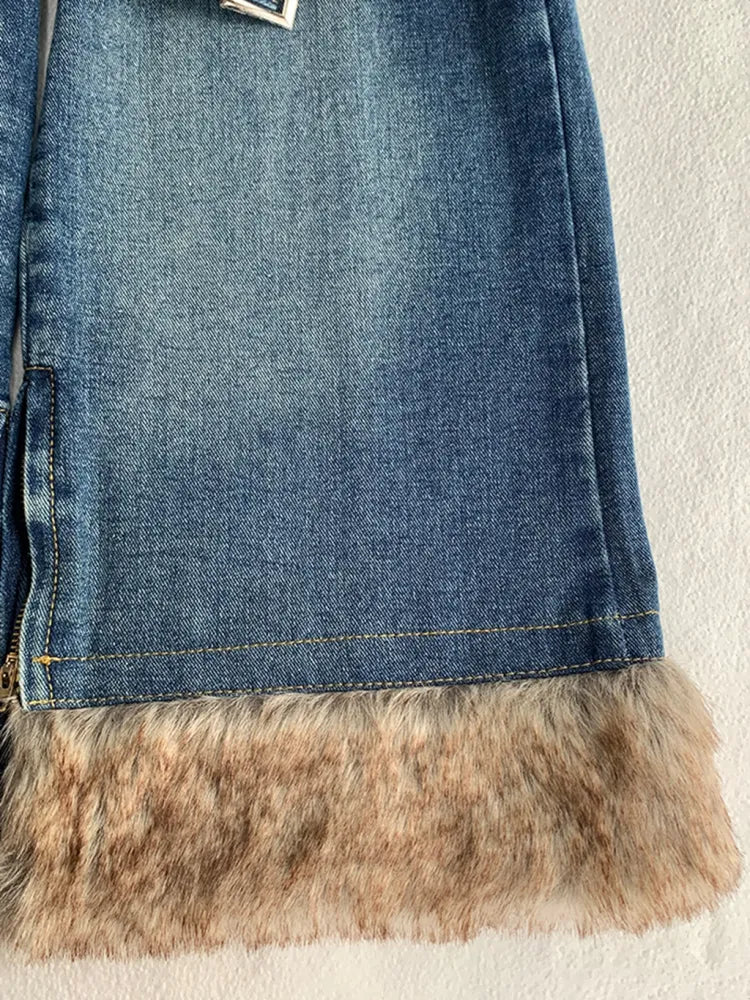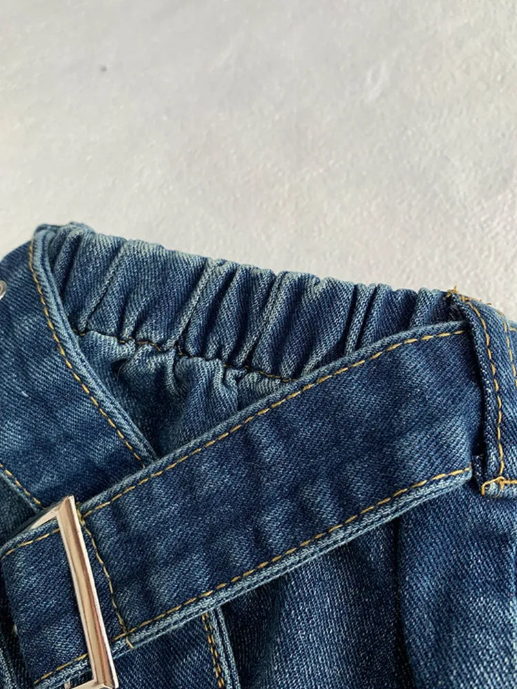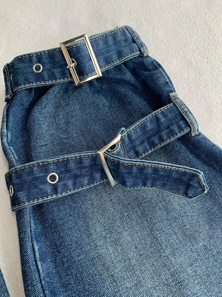 ブルーバックルストラップフレアデニムレッグウォーマー