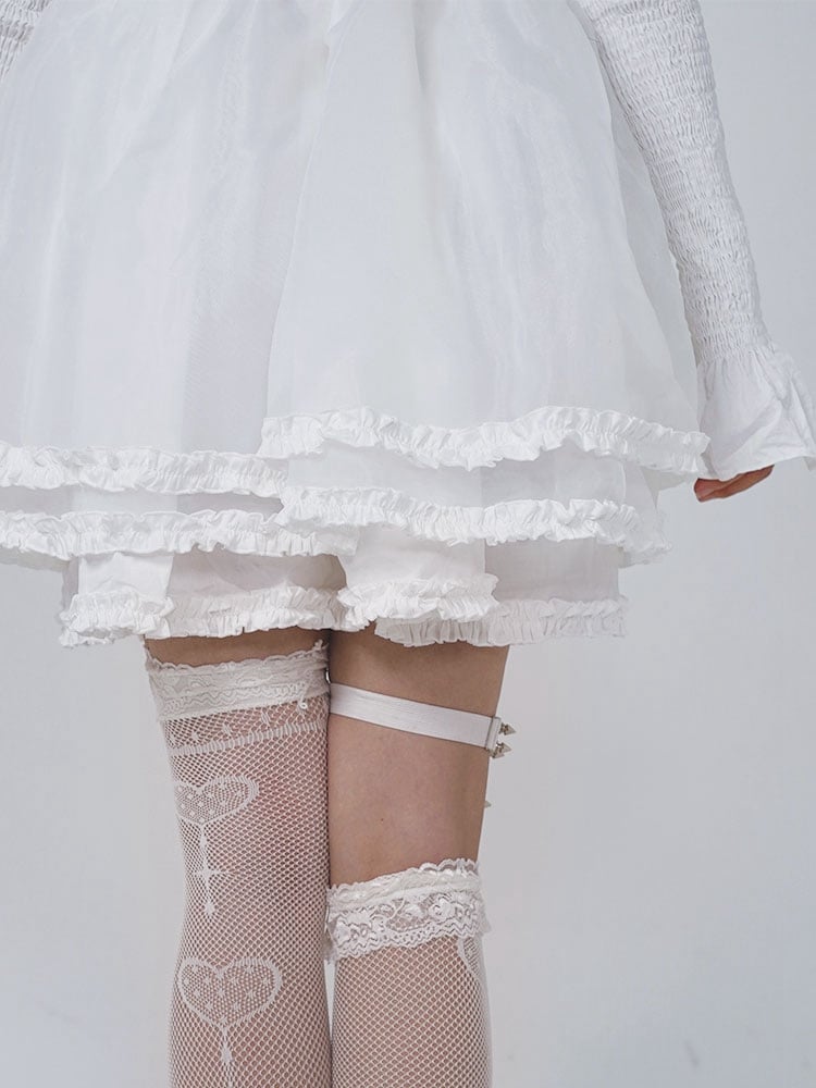 レッグオブマトンスリーブティアードスカートホワイトドレス