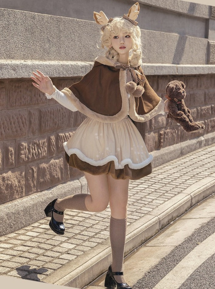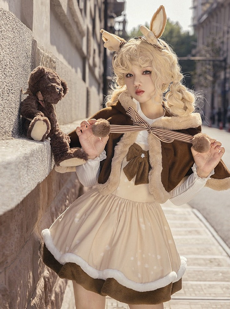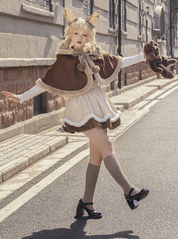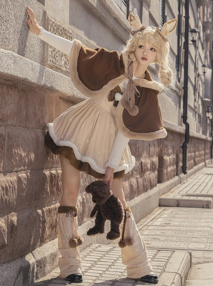 レッグサスペンダー+スカートケープブラウンファーウォーマーファー