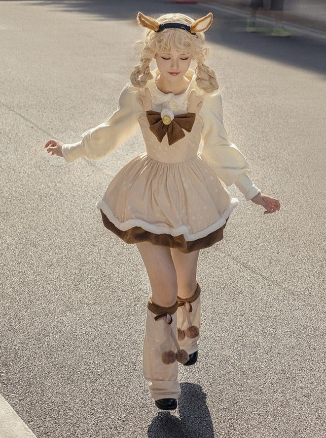 青と白のオールドスクールロリータファッションドレス 蝶結びディテール JSK セット