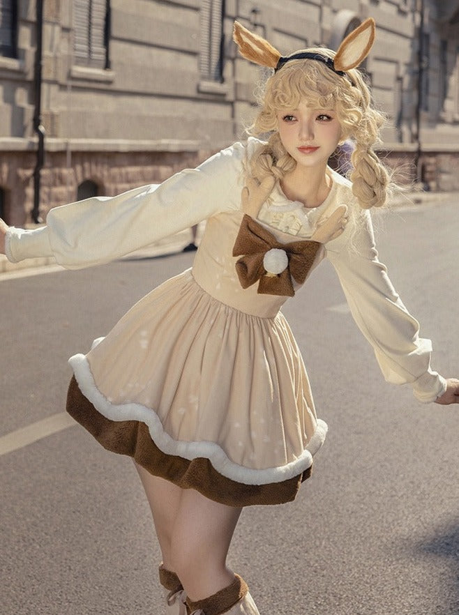 ピンクと白のオールドスクールロリータファッションドレス、蝶結びディテール、ロリータJSKセット