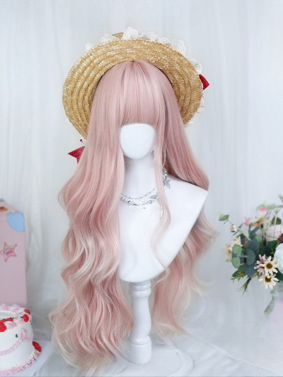 長さ75-80CMのピンクウェーブフル前髪ウィッグ