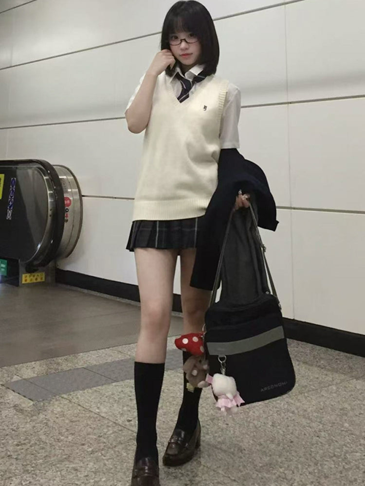8 Color Options Preppy Style JK Uniform Letter Embroidery Vest