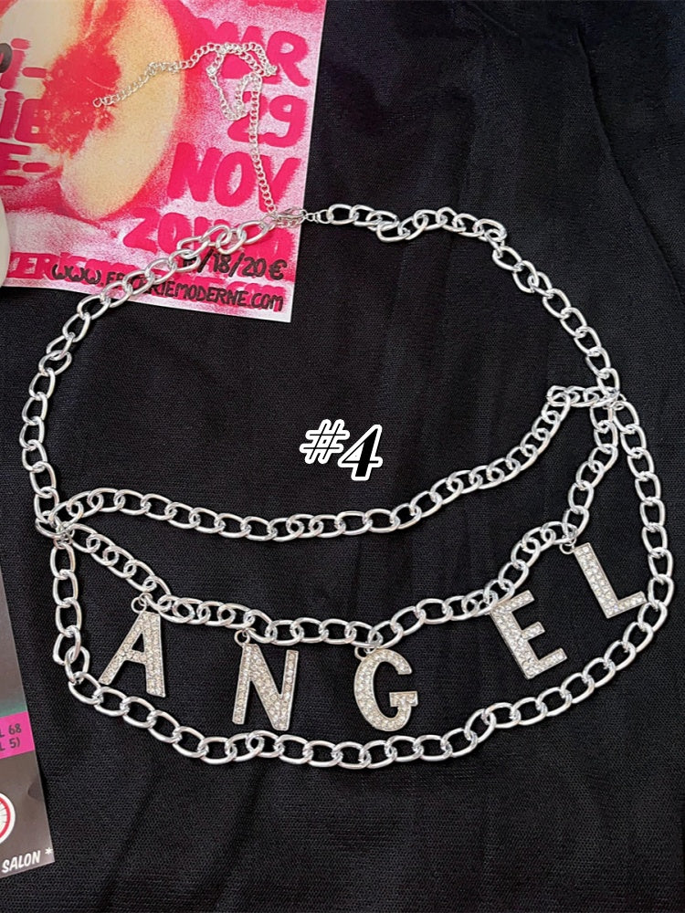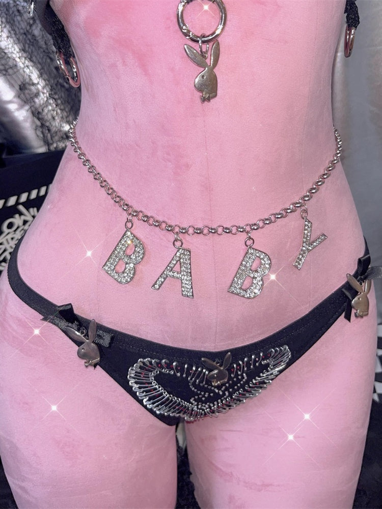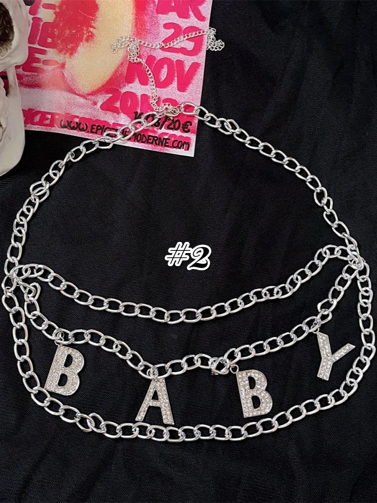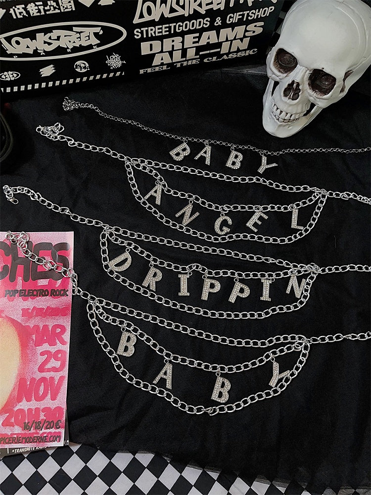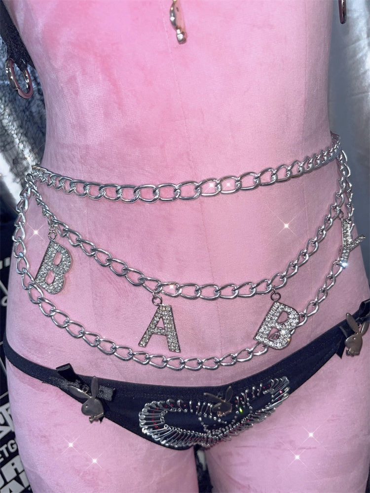 レターラインストーンデザインのパンクウエストチェーンで、キュートで自信に満ちた装いを。キラキラ輝くラインストーンとエッジの効いたチェーンが、どんな装いにも反骨精神をプラス。万能なこのアクセサリーで、個性的なスタイルをアピールしましょう。