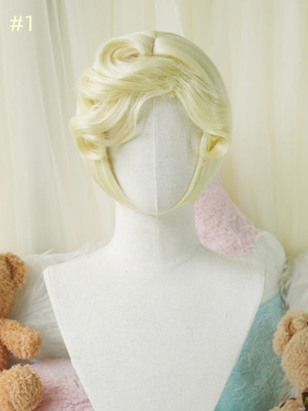 ライトブロンドのボブカットショートウィッグ(カール/フルバング付き)
