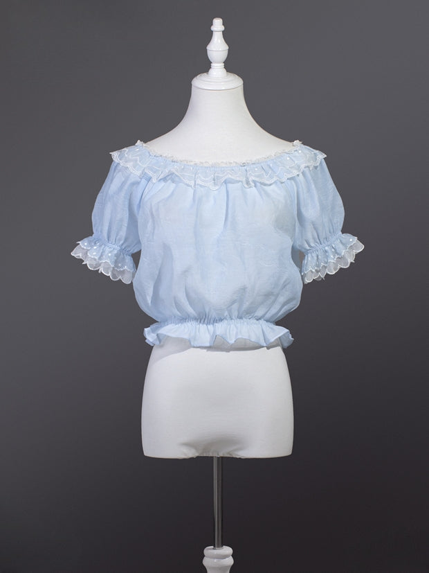 ショートパフスリーブとライトブルーのシフォンブラウスは、ワードローブに甘さをプラス。どんなシーンにもぴったり。着心地の良さとスタイリッシュさを兼ね備え、キュートで魅力的な印象を与えます。