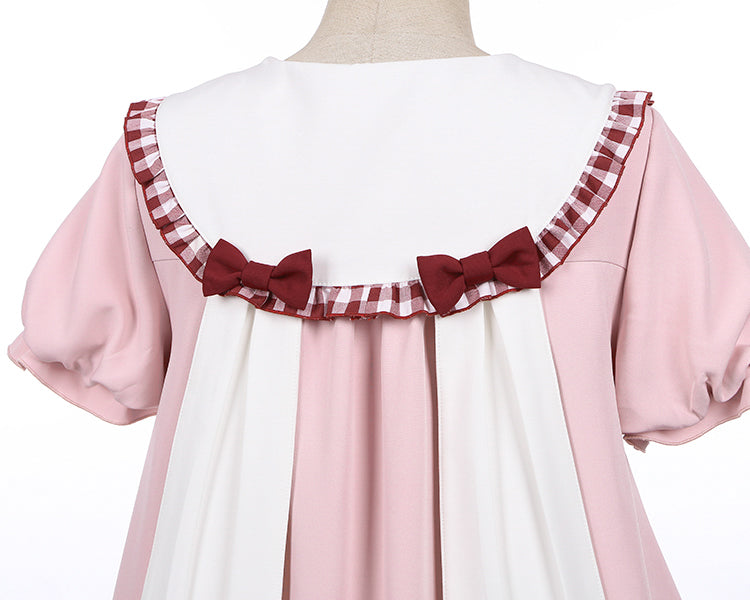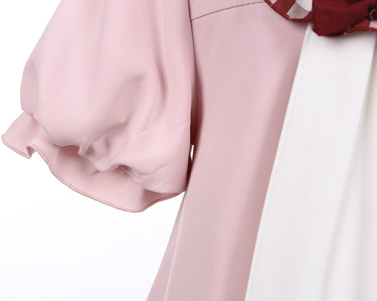 ピンクと白のオールドスクールロリータファッションドレス、蝶結びディテール、ロリータJSKセット