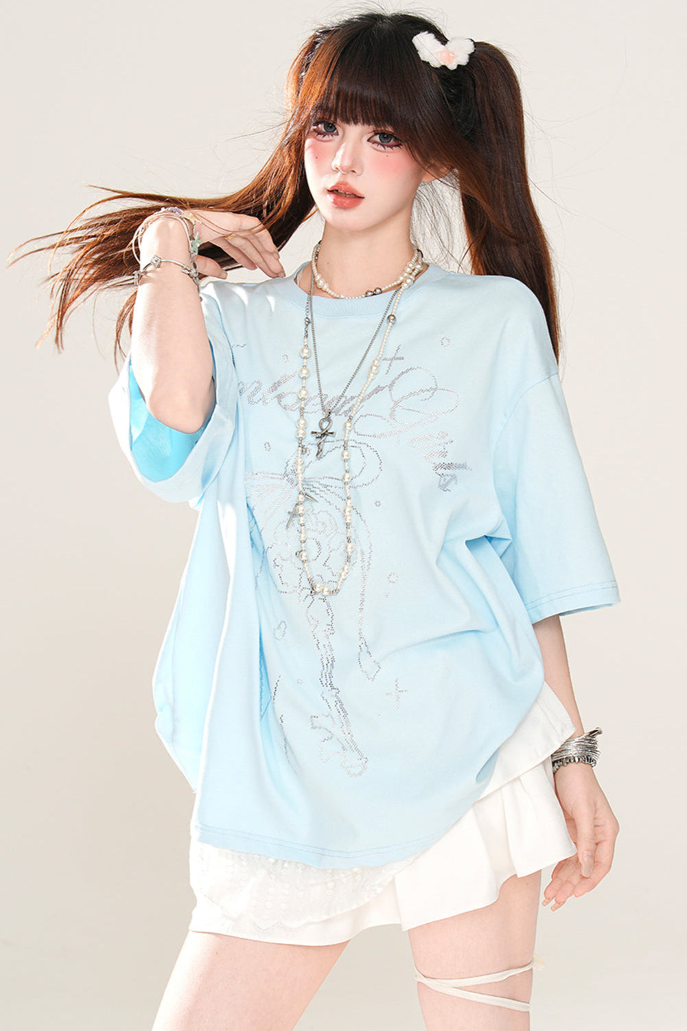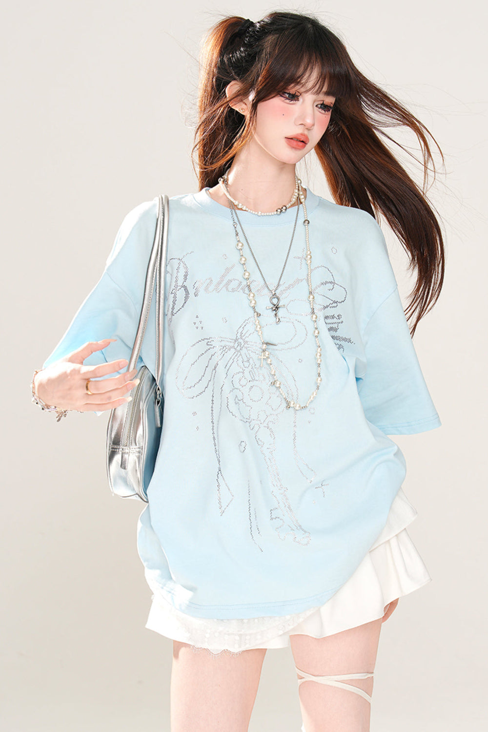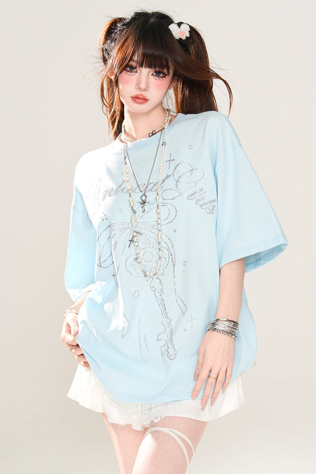 青と白のオールドスクールロリータファッションドレス 蝶結びディテール JSK セット