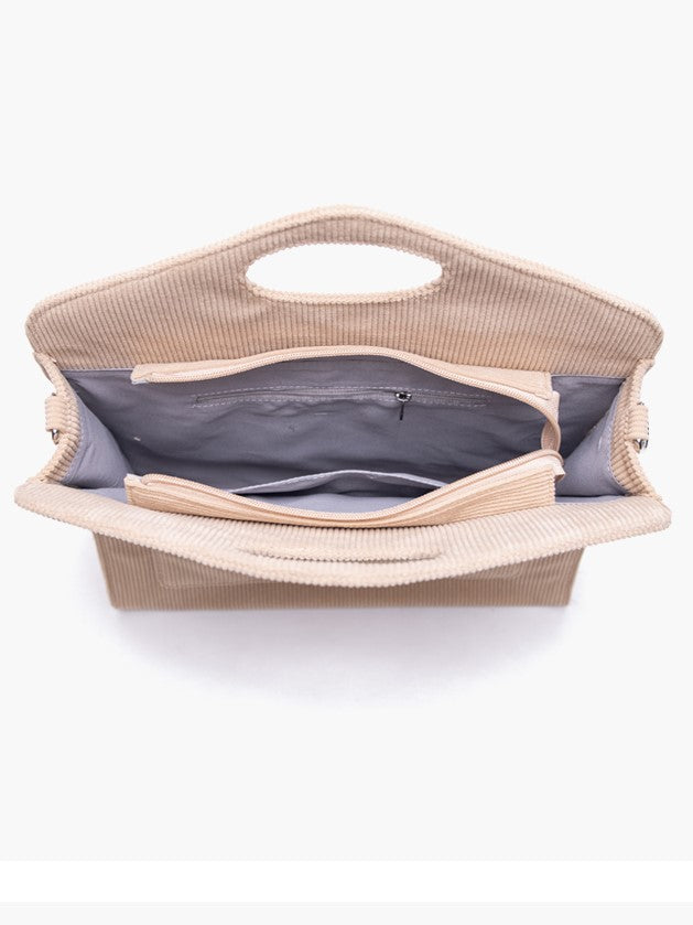 Brown Corduroy Tote Bag: Large Capacity & Lightweight With Embroidered Lettering