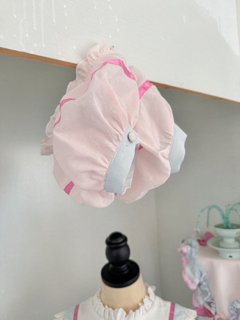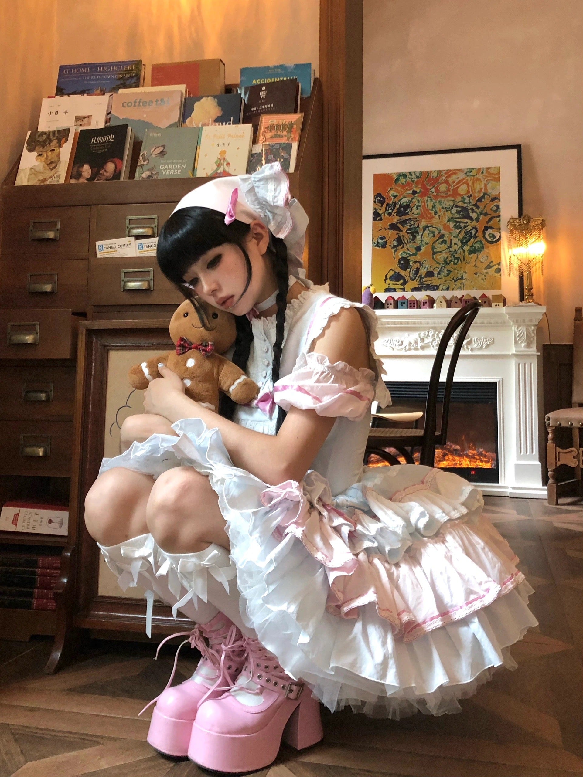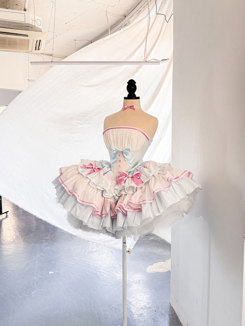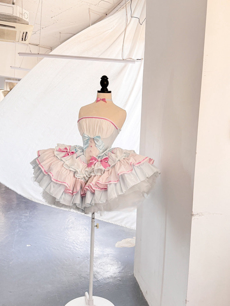 ピンクと白のオールドスクールロリータファッションドレス、蝶結びディテール、ロリータJSKセット