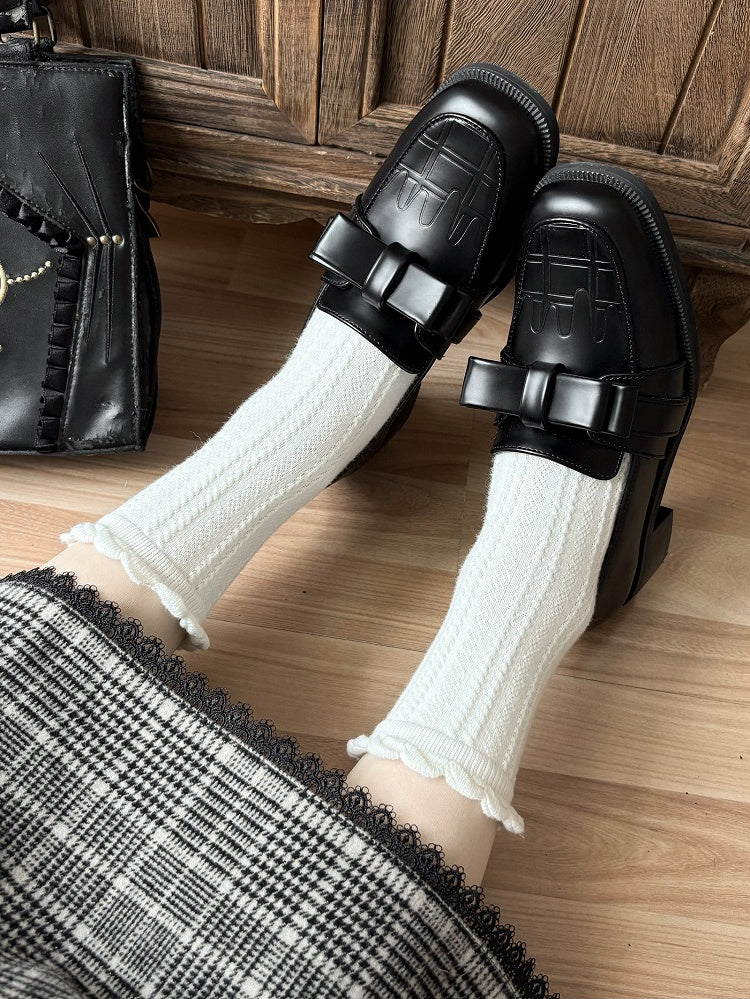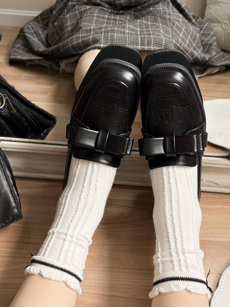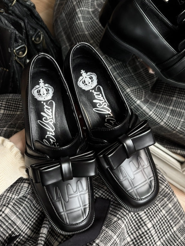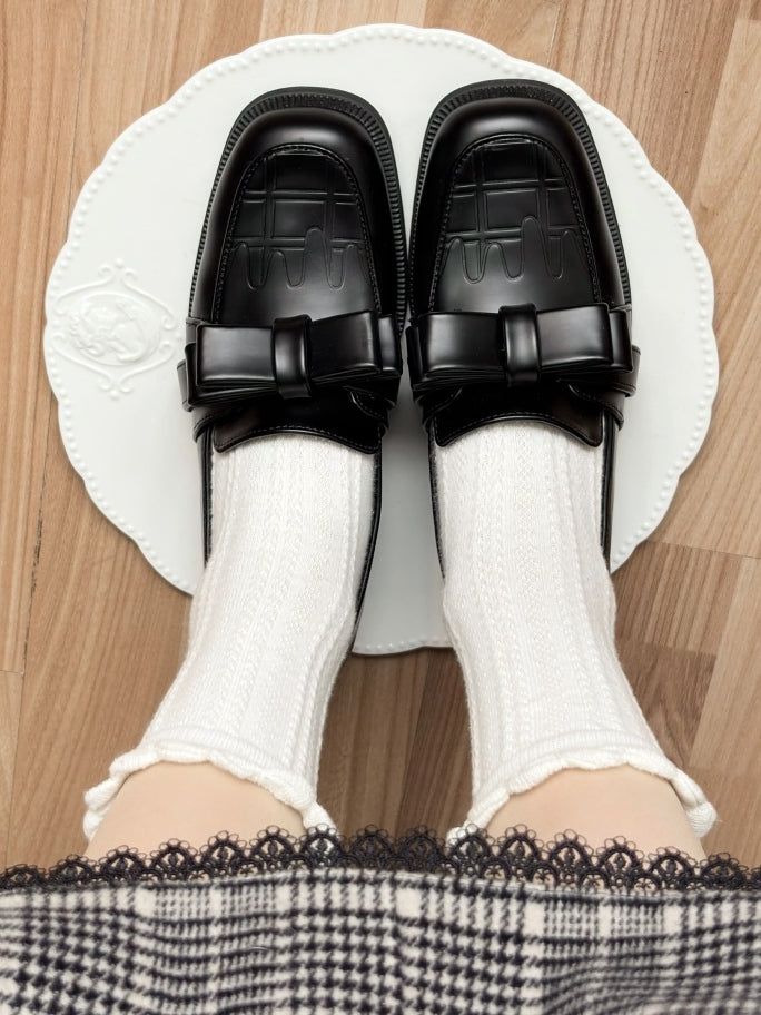ブラックチョコレートリボン付きスリップインフィットローファーシューズ