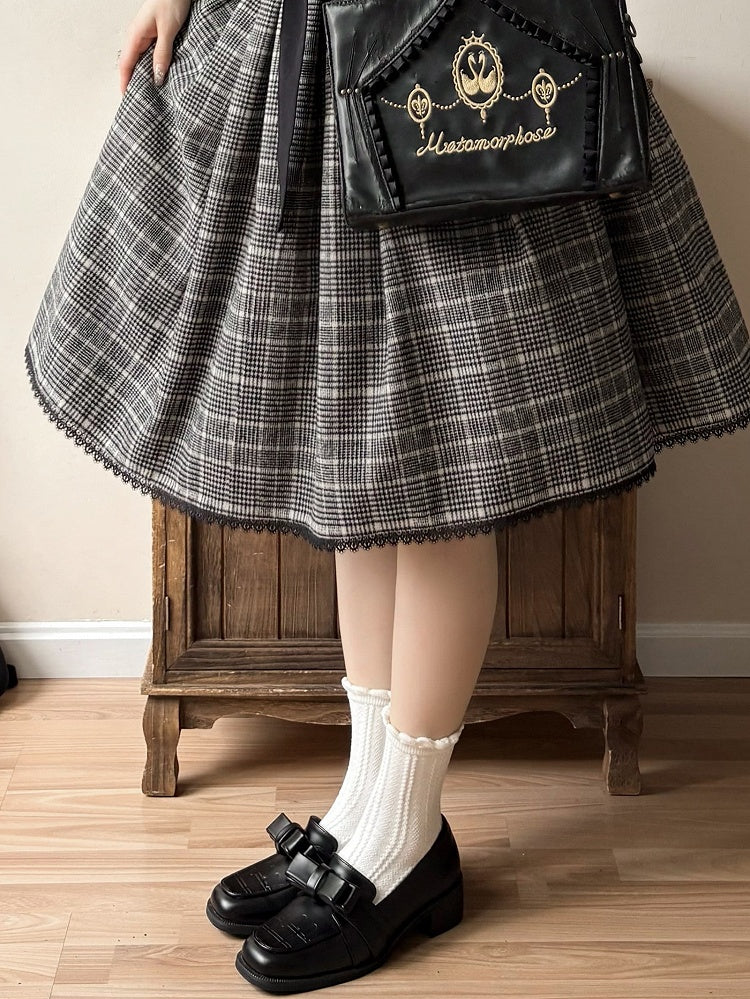黒と白のオールドスクールロリータファッションドレス蝶結びロリータJSKセット