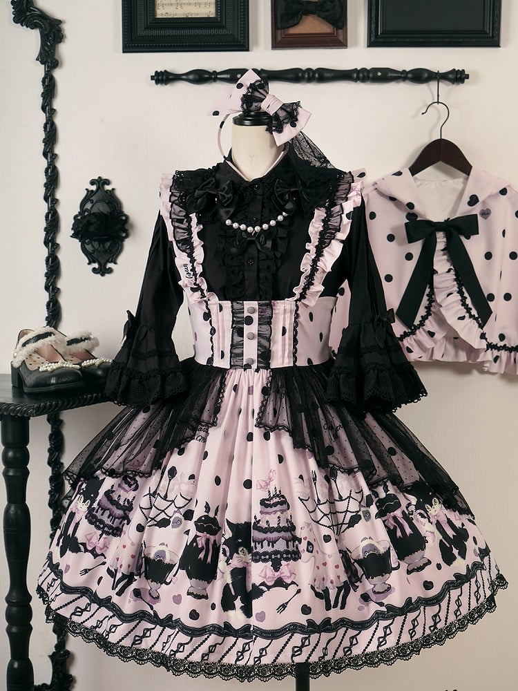黒と白のオールドスクールロリータファッションドレス蝶結びロリータJSKセット