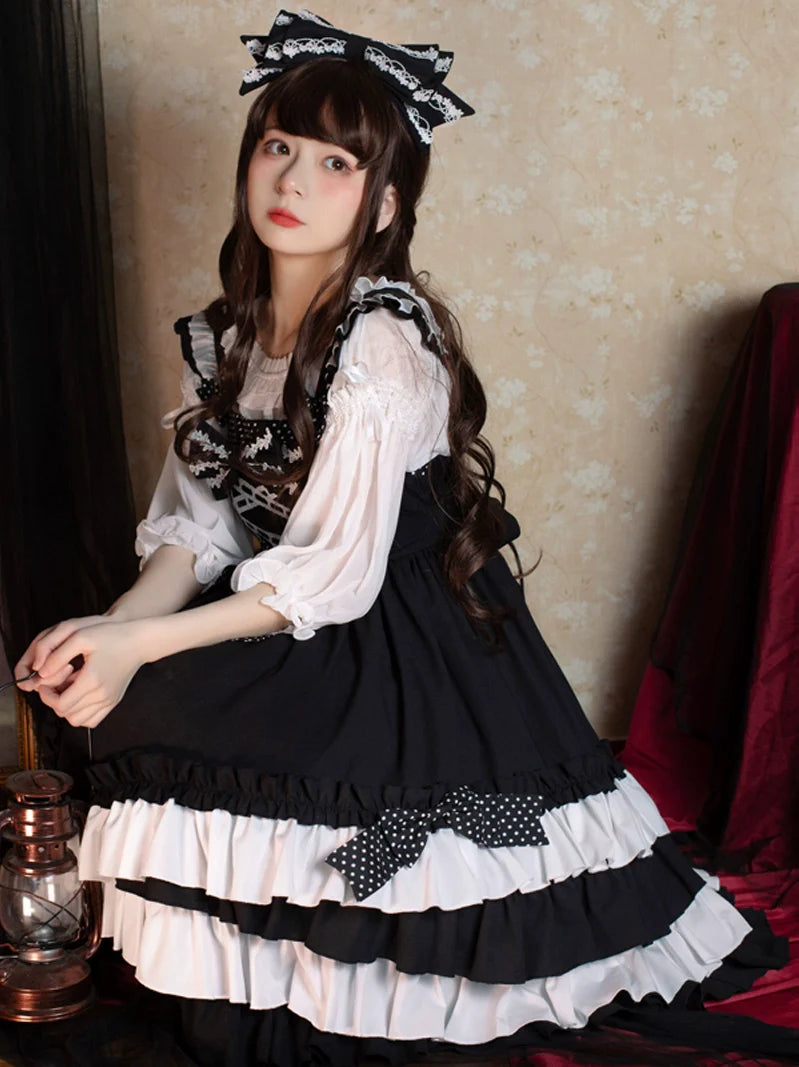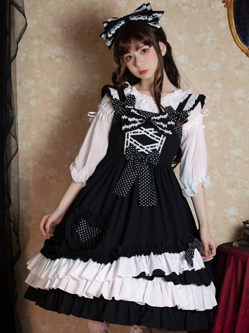 黒と白のオールドスクールロリータファッションドレス蝶結びロリータJSKセット