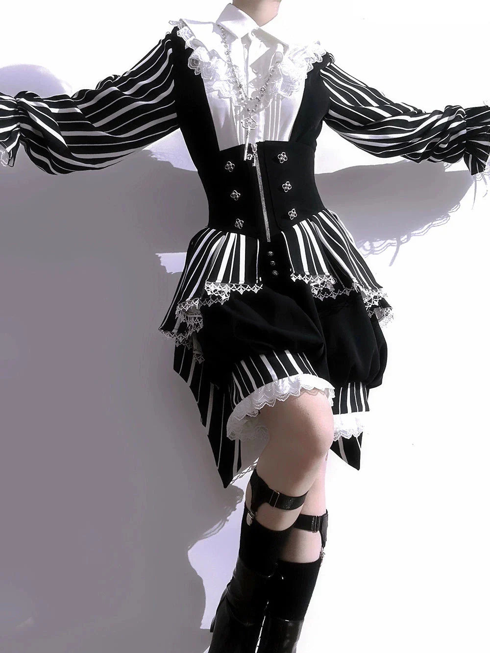 黒と白のオールドスクールロリータファッションドレス蝶結びロリータJSKセット