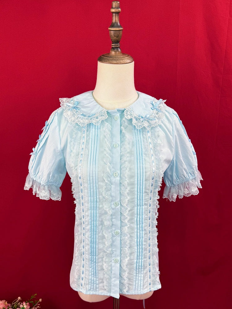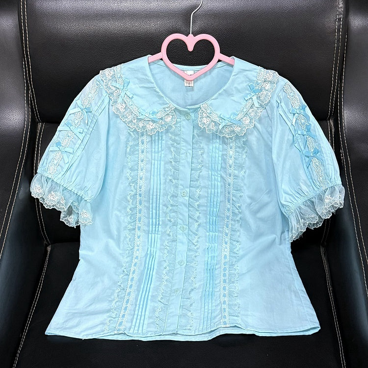 ロリータショートブルーパンスリーブコットンピーターブラウスカラースイート