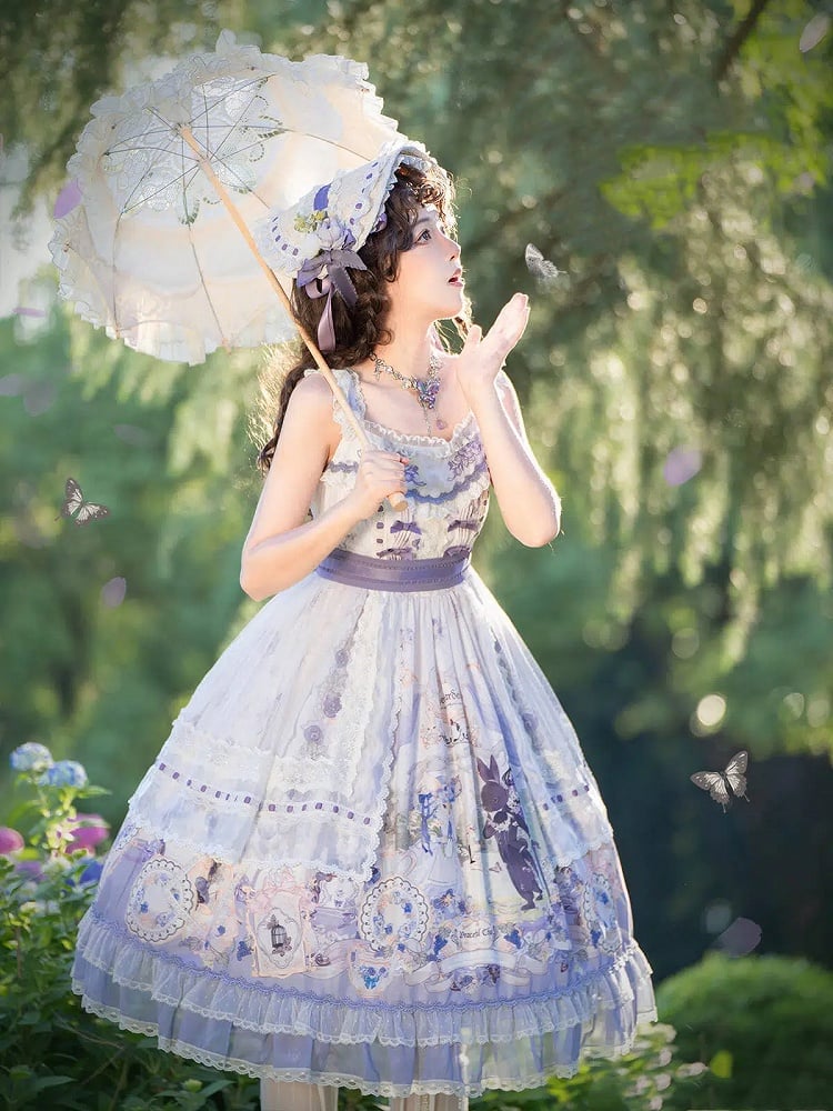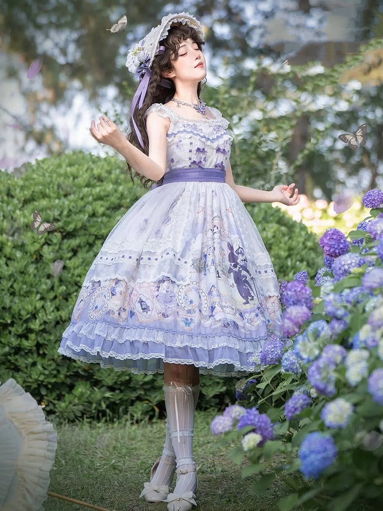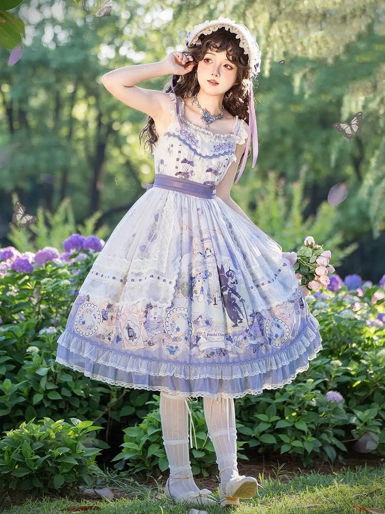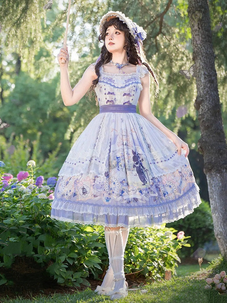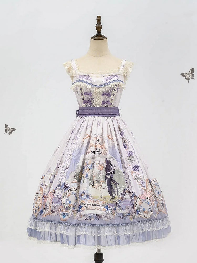 バニーティーパーティープリントのエレガントクラシックロリータジャンパースカート