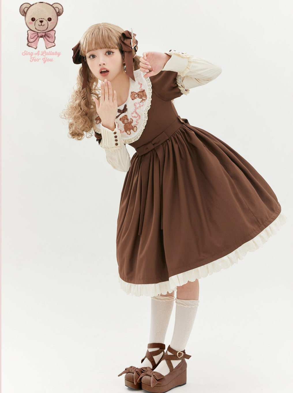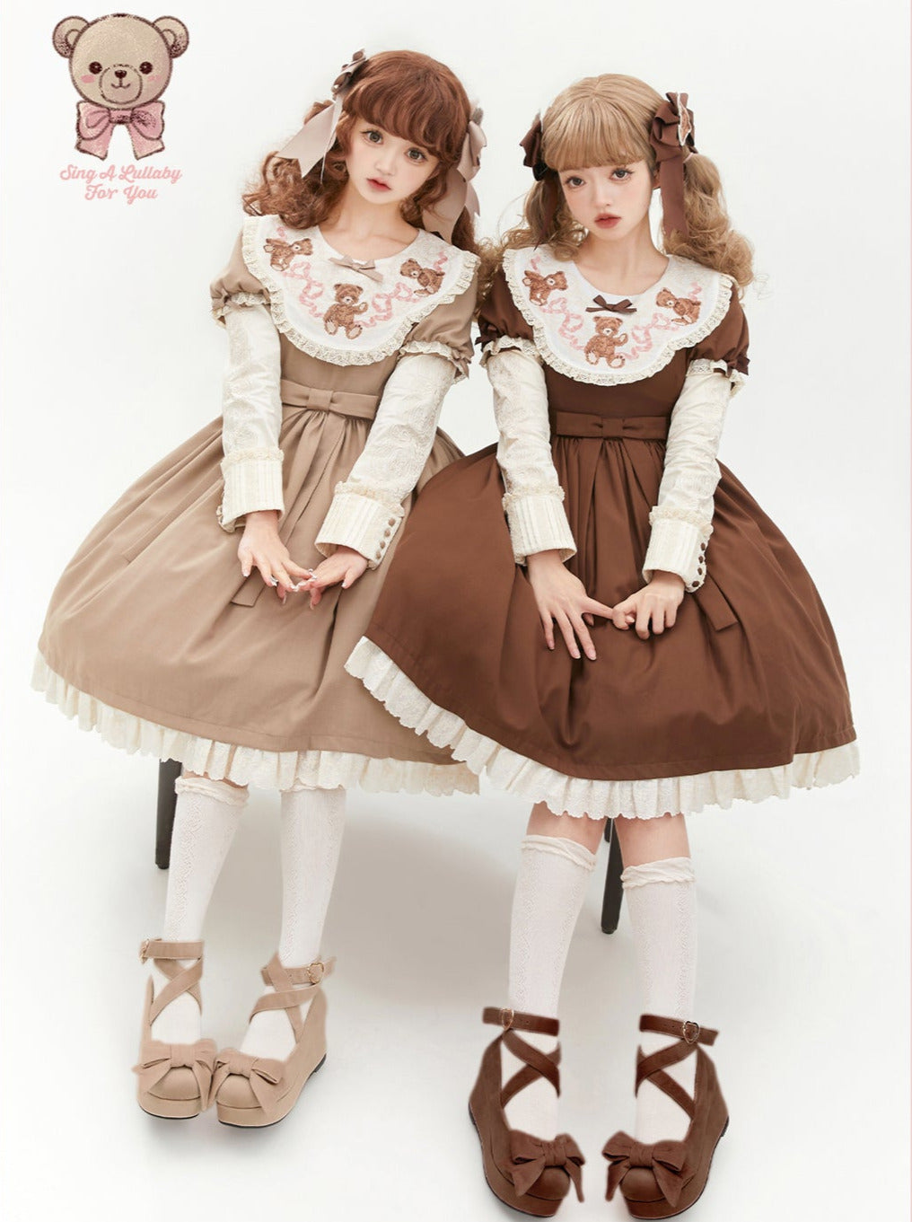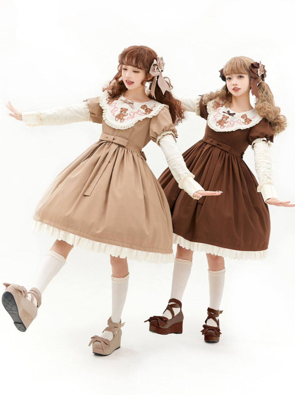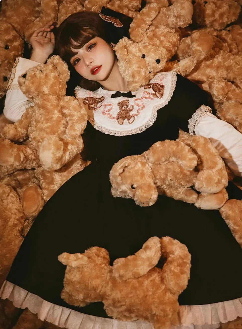 ロリータテディベアフラップレースパフスリーブリボンデレス