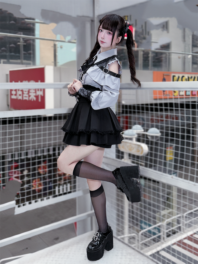 黒と白のオールドスクールロリータファッションドレス蝶結びロリータJSKセット