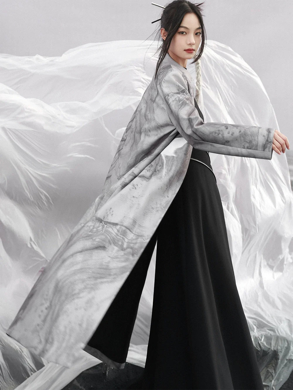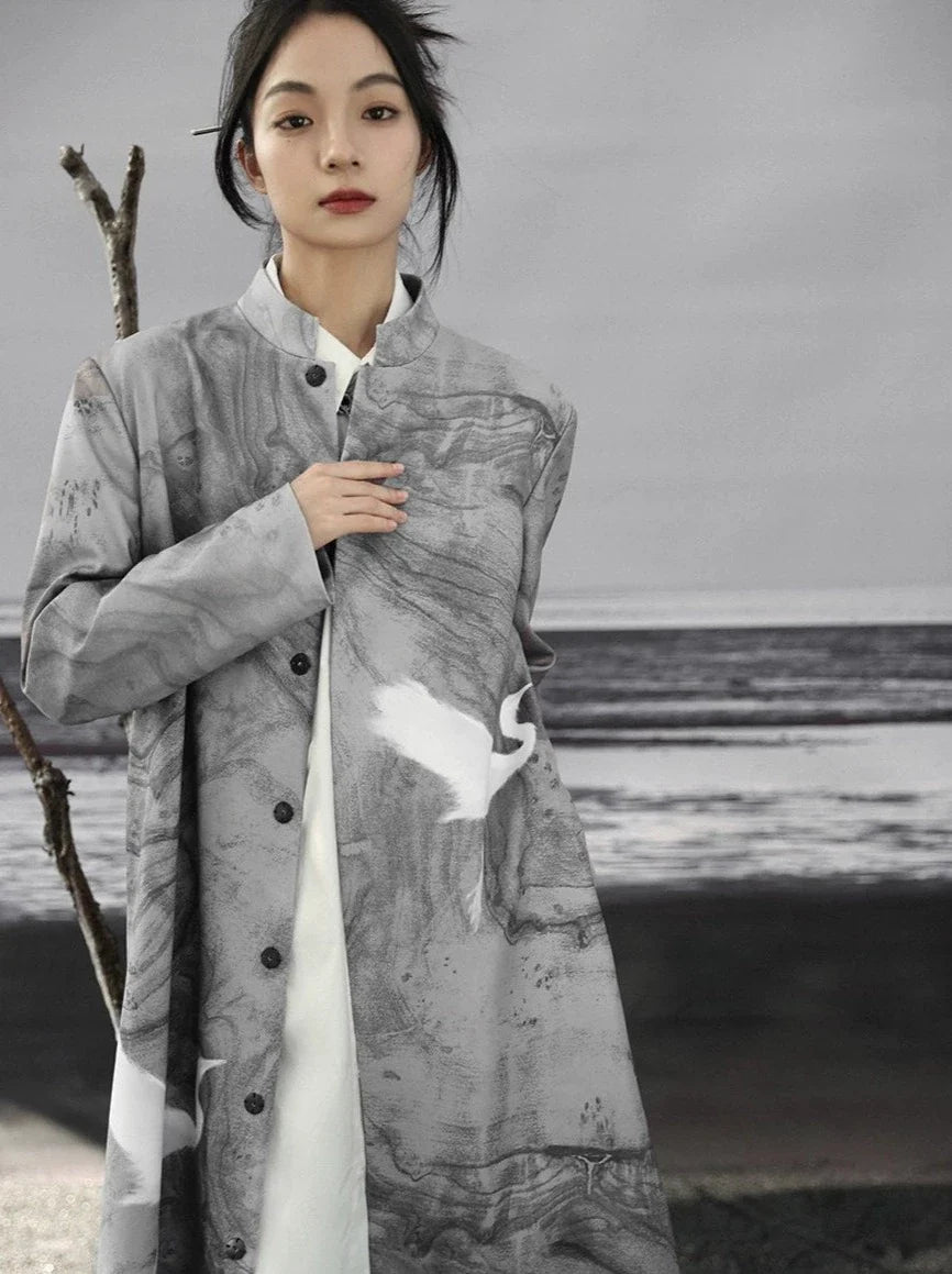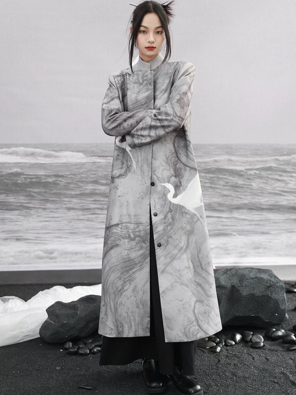 マーブル模様のロングコート「マーブル チャイナモード」で、暖かくキュートな装いを。個性的なマーブル模様が目を惹く、注目の的になること間違いなし。上質な素材を使用し、一年を通して暖かくスタイリッシュに着こなせます。ファッションに敏感な方にぴったりです。