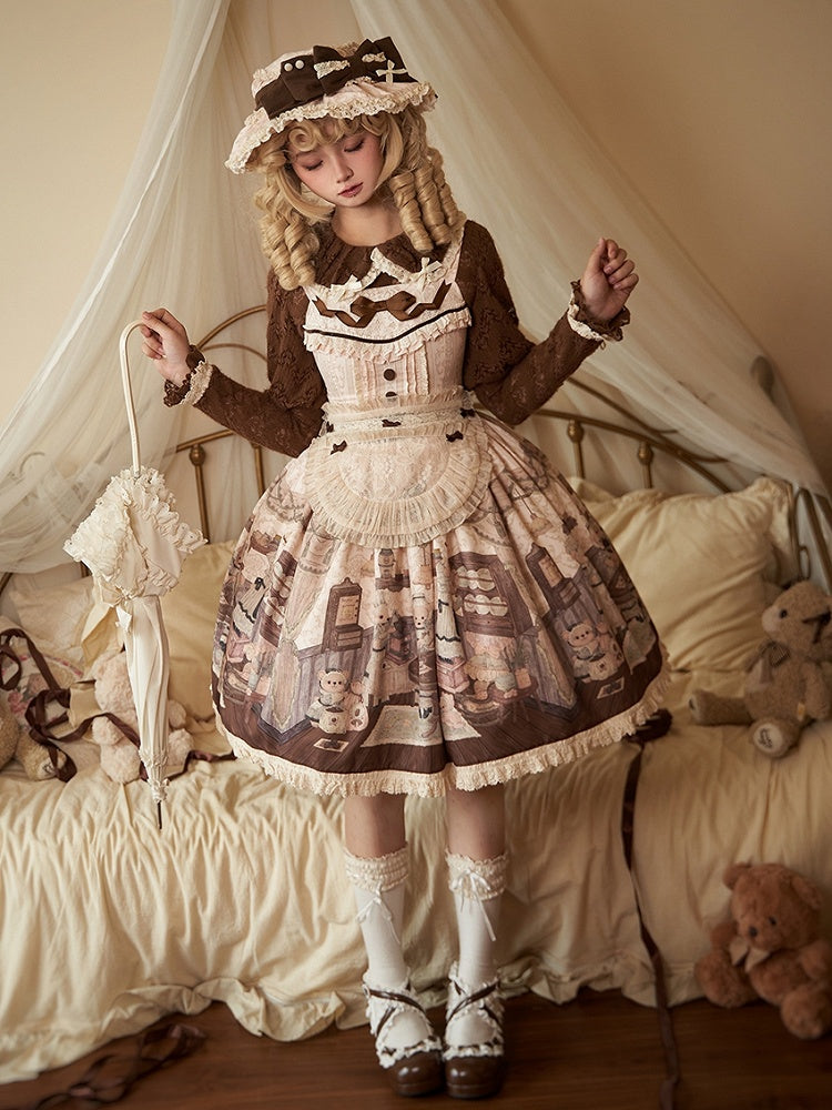 黒と白のオールドスクールロリータファッションドレス蝶結びロリータJSKセット