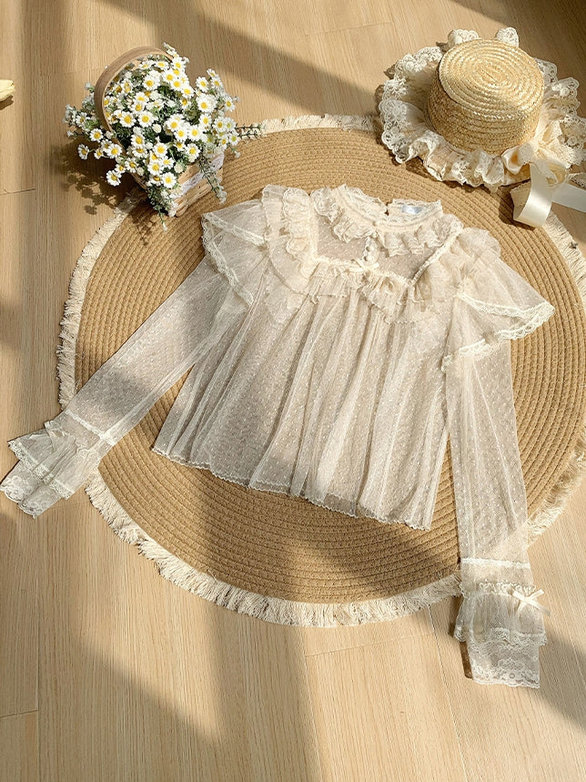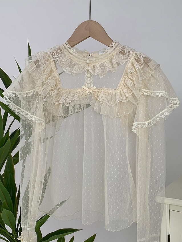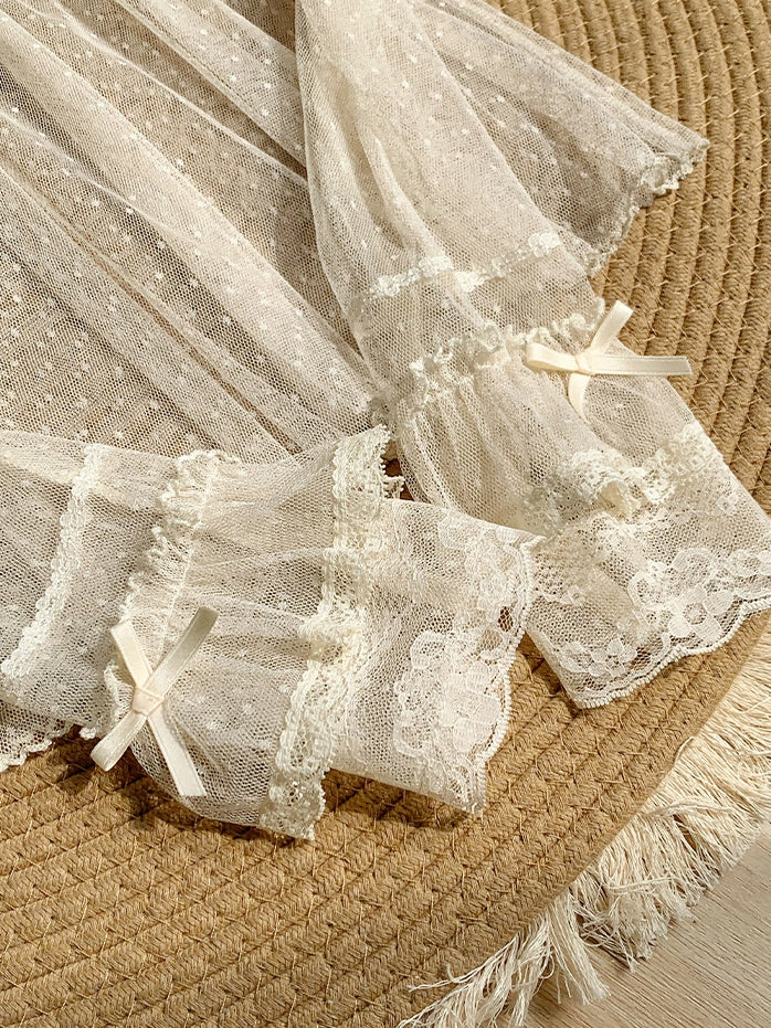 ロングチュールシアートップス レース ベージュスリーブ ドット