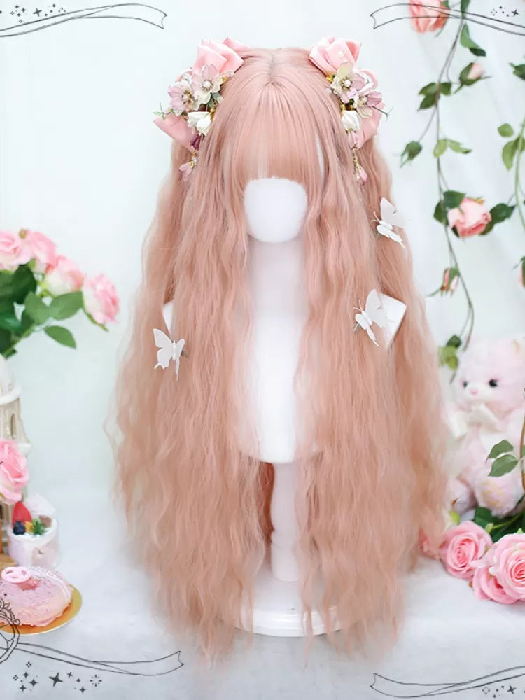 ロングウィッグ ピンク - クリアランス カーリーグレープフルーツ 合成繊維