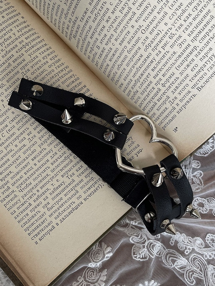 ハートリングとスタッズ装飾付きブラックレッグループ