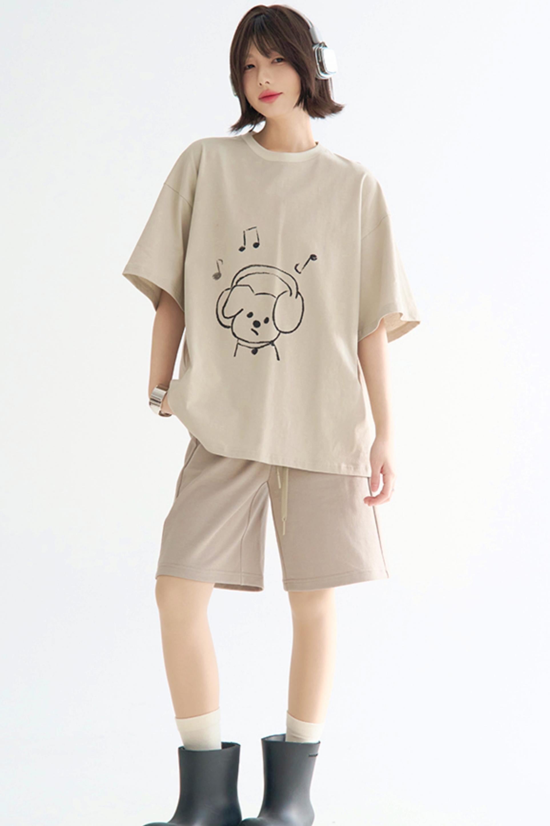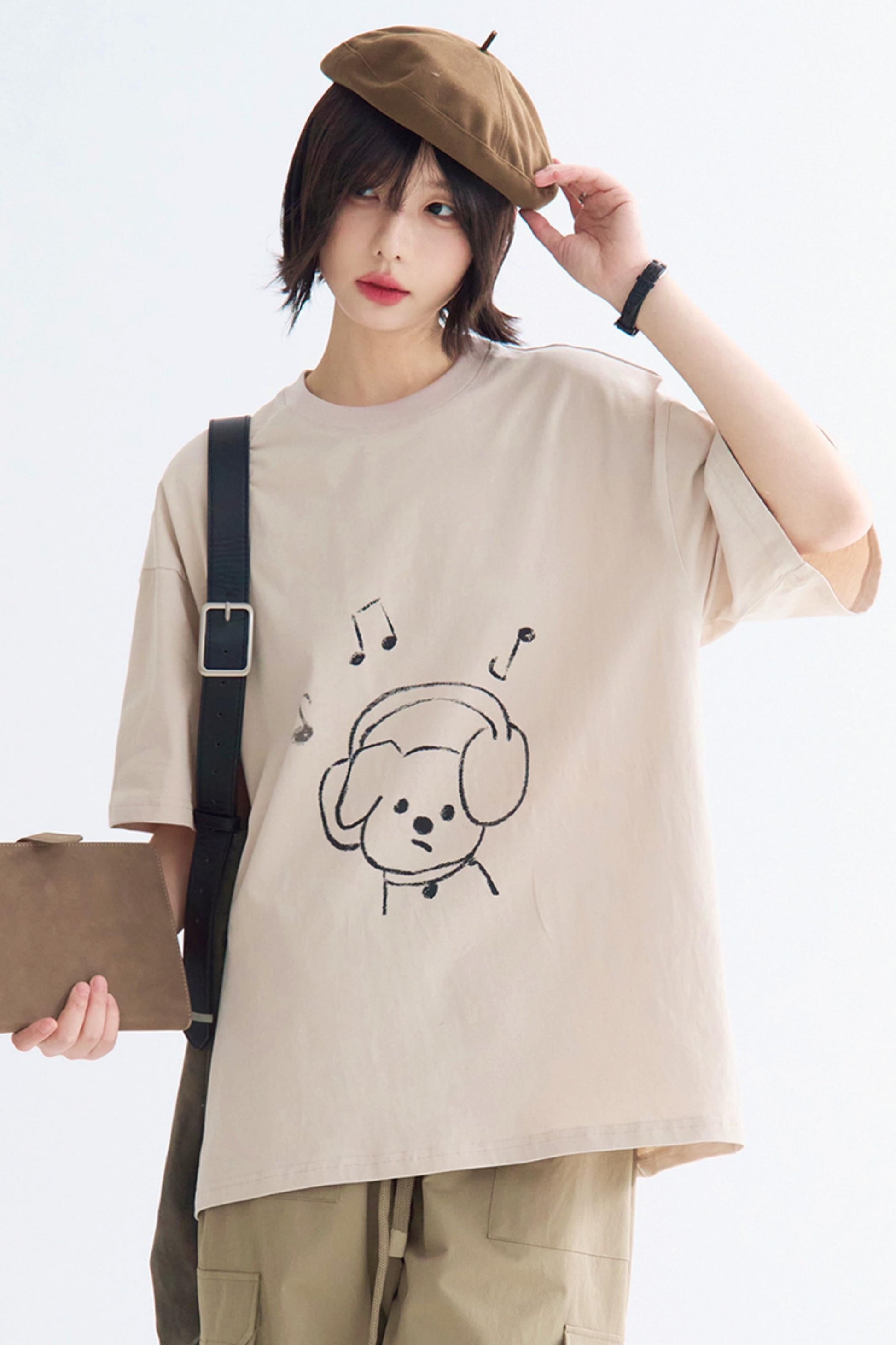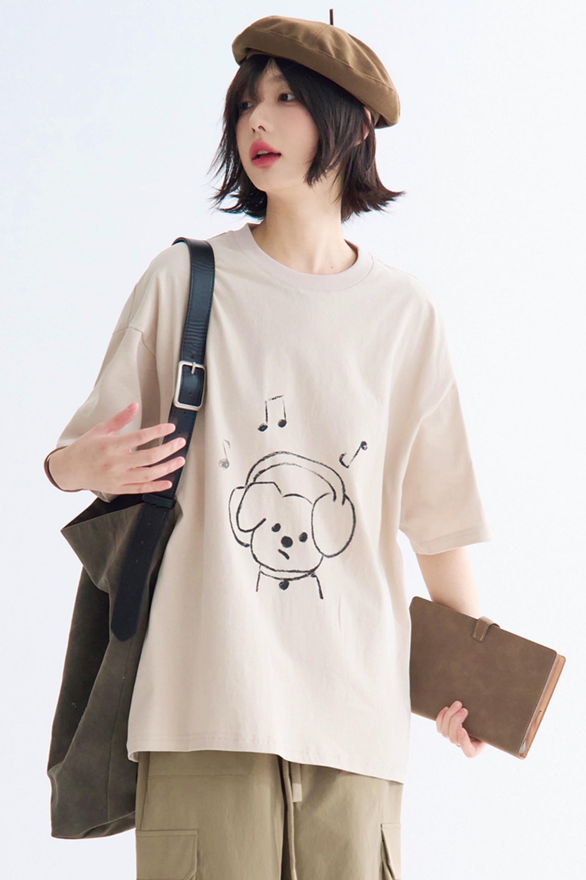 ❤ルーズフィット パピー グラフィック Tシャツ❤