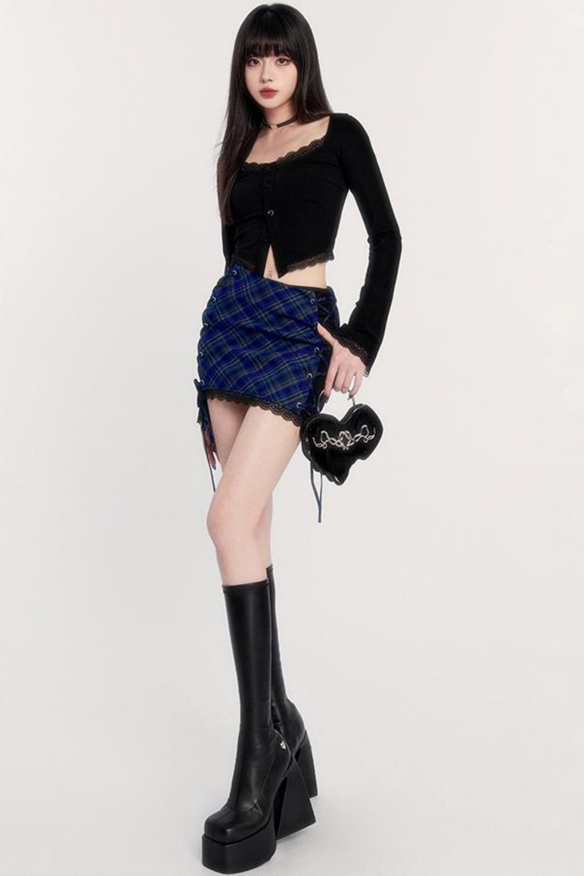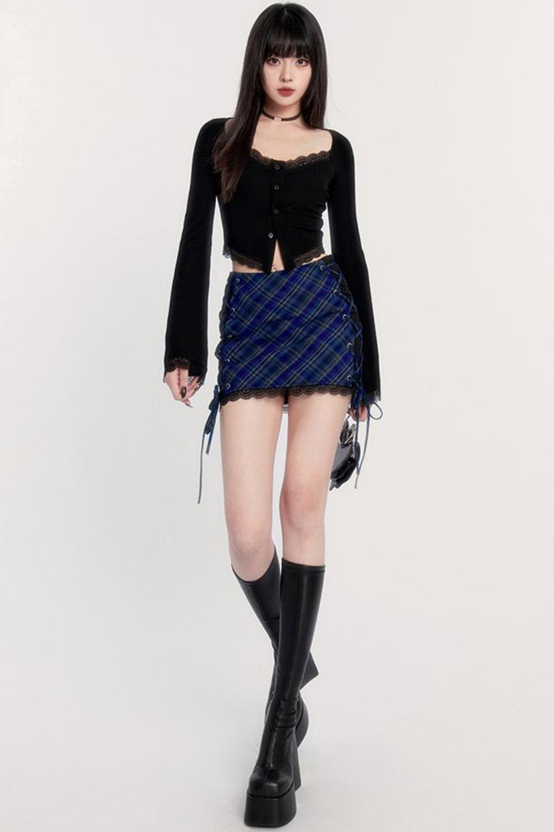 青と白のオールドスクールロリータファッションドレス 蝶結びディテール JSK セット