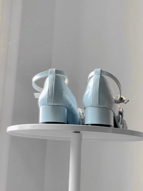 Low-heel Mary Janes with Bow Sweet Lolita Round-Toe Blue Accent