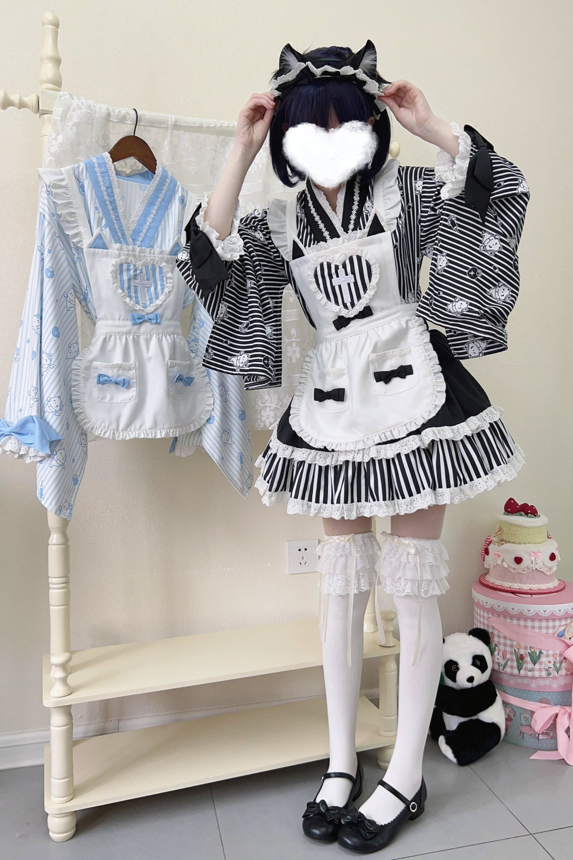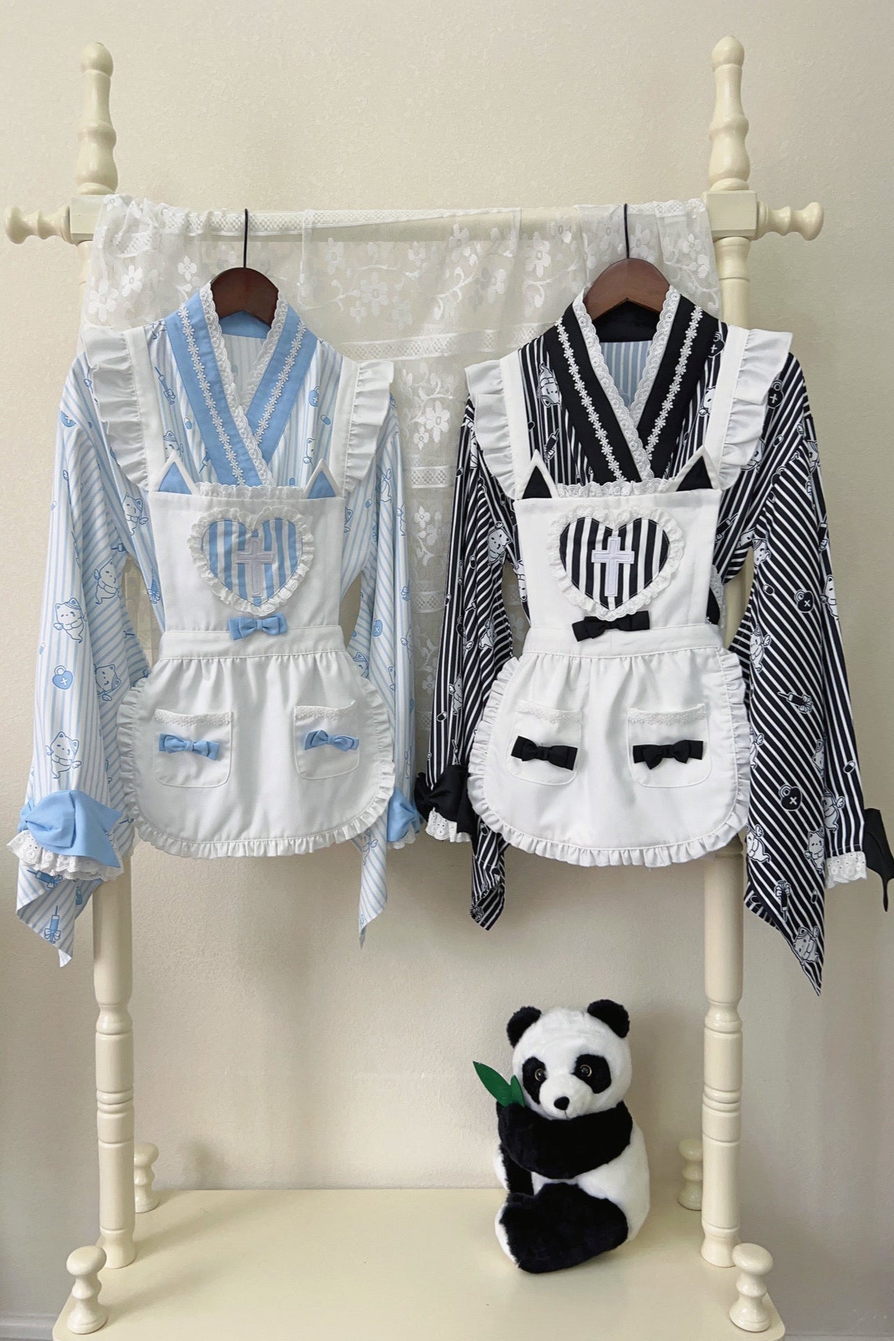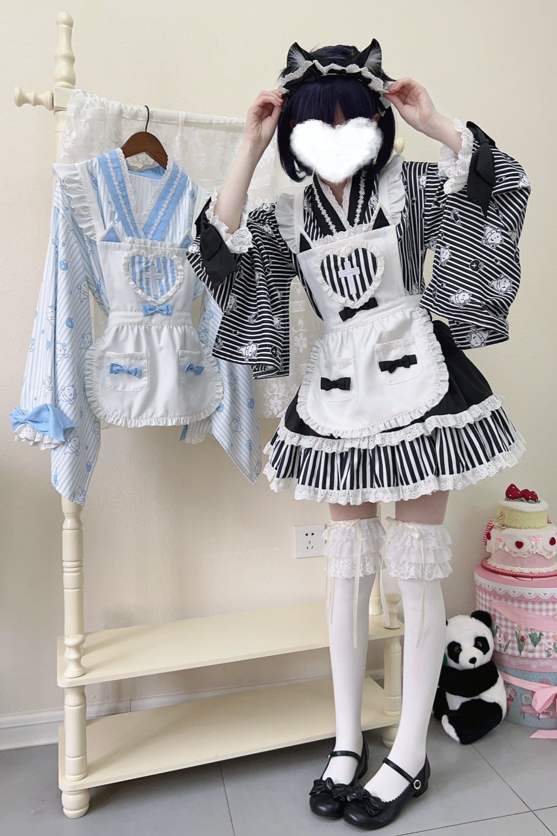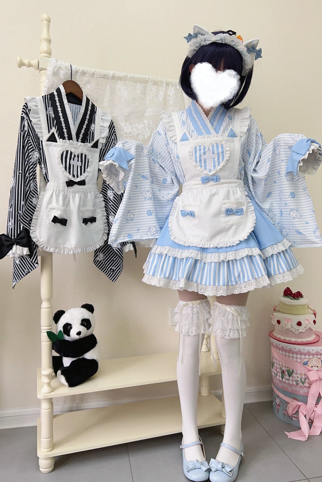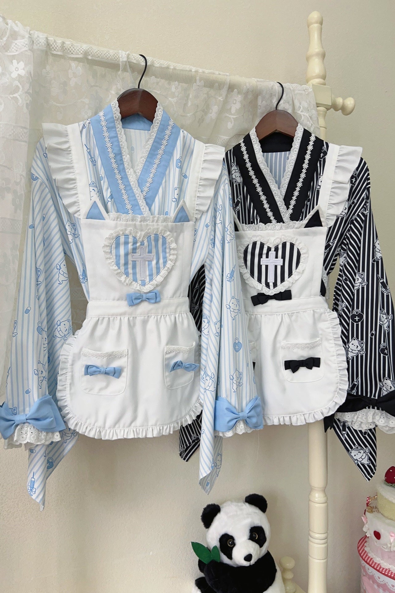 青と白のオールドスクールロリータファッションドレス 蝶結びディテール JSK セット