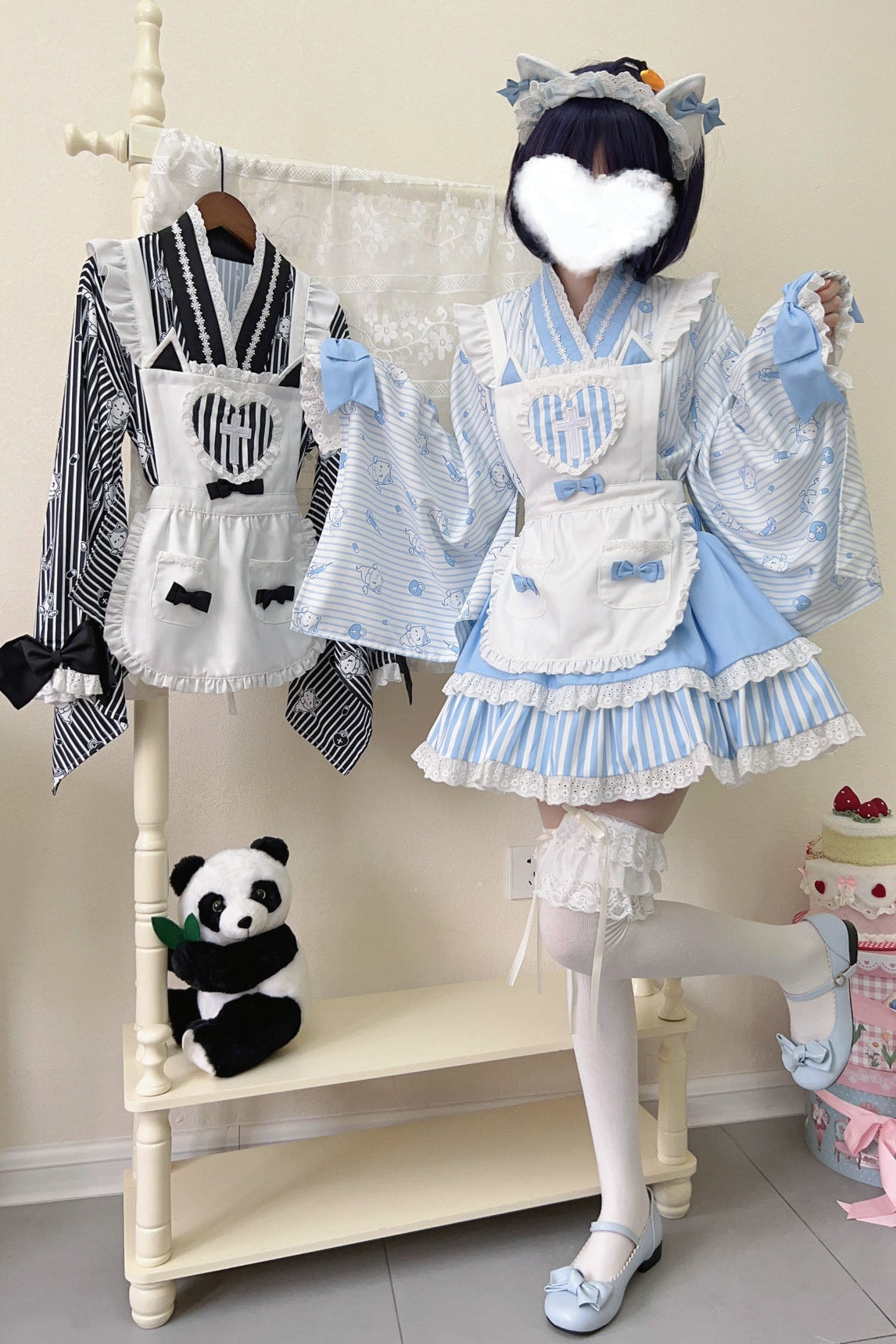 黒と白のオールドスクールロリータファッションドレス蝶結びロリータJSKセット