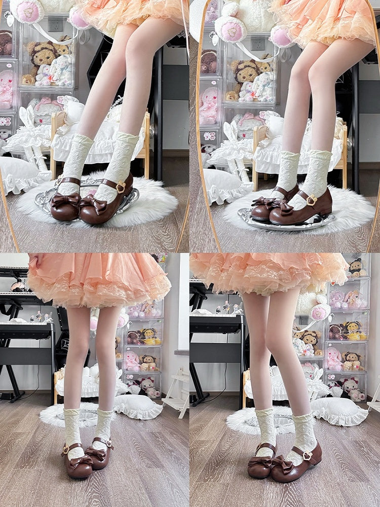 Sweet Brown Lolita Low-heel Mary Janes - PU Leather with Top Bow & Bunny Fastener