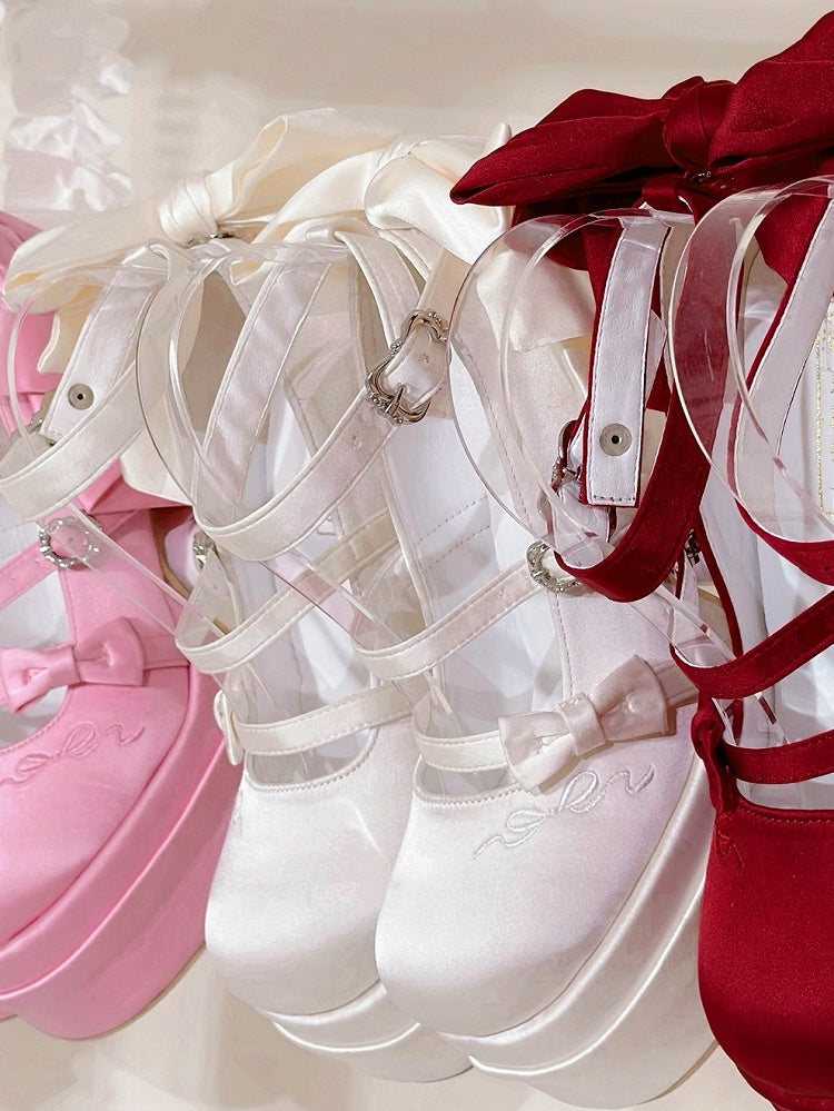 メアリーロリータ プラットフォーム ボウノット エレガント ジェーンズ ハイヒール ホワイト クラシック