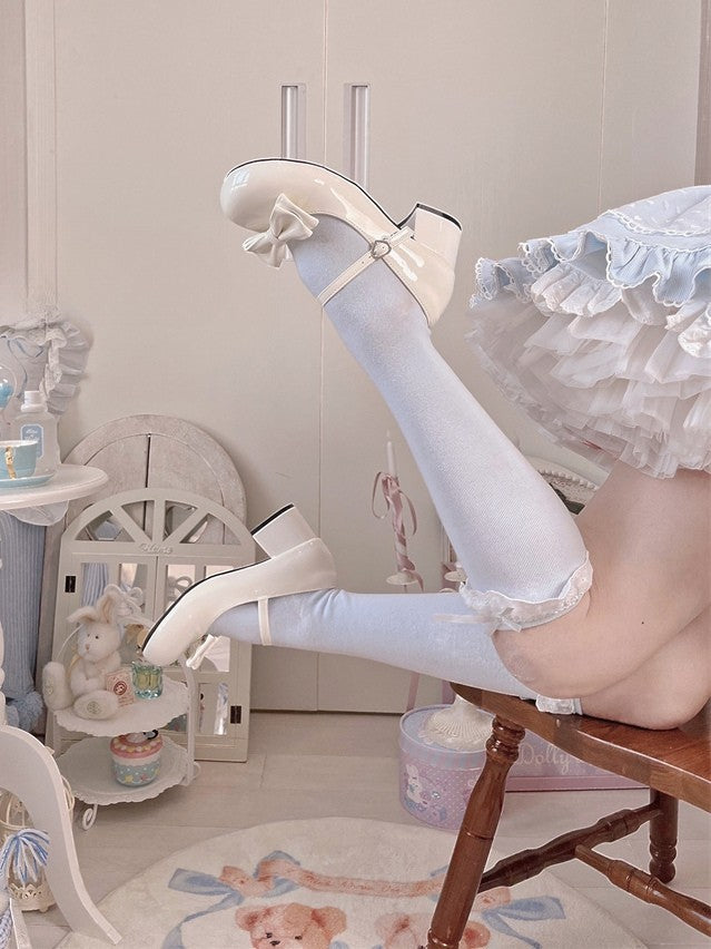 Mid for Off-white Lolita Round Janes Buckle Mary Toe Heart Sweet - with Bow Heel Detachable