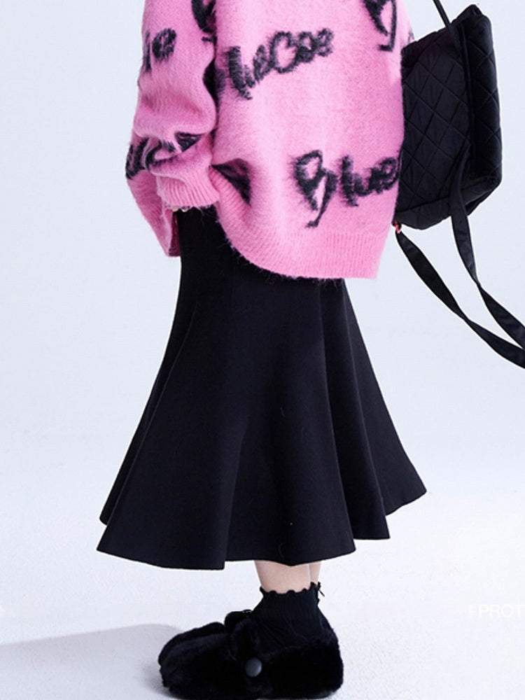 Midi Skirt High-Waisted Elegant Mermaid Thick Black A-Line