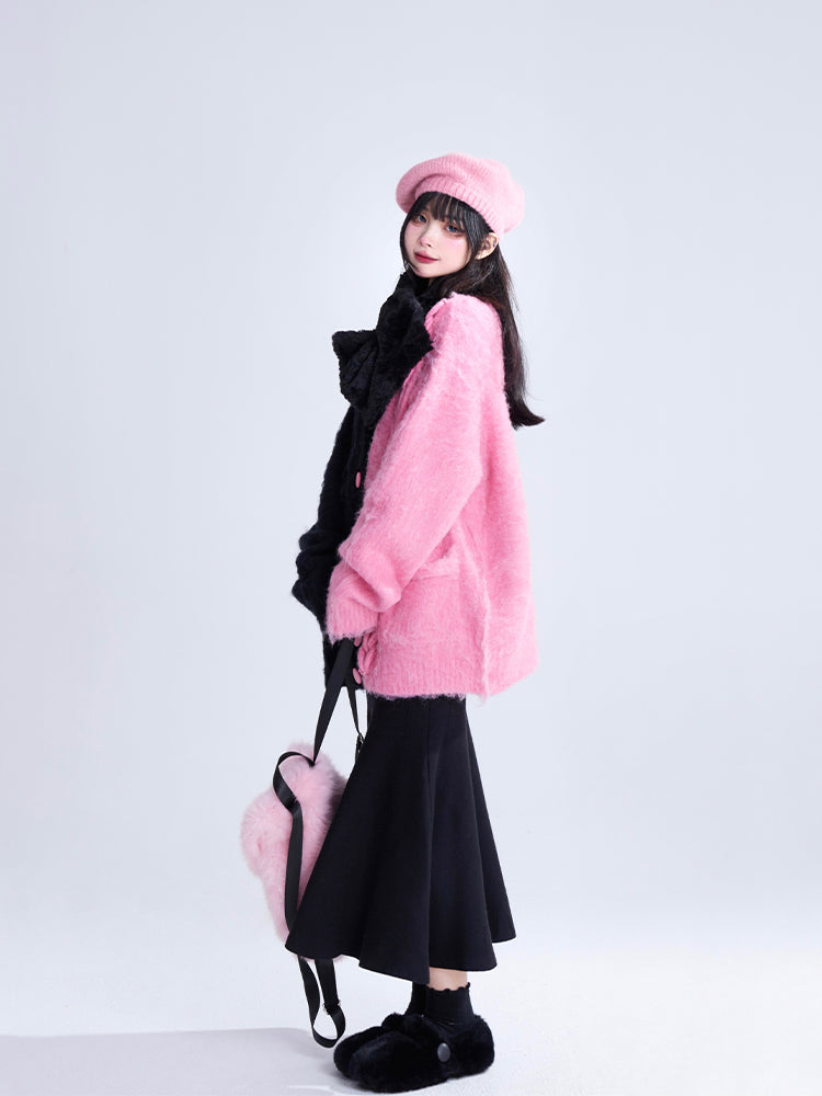ピンクと白のオールドスクールロリータファッションドレス、蝶結びディテール、ロリータJSKセット