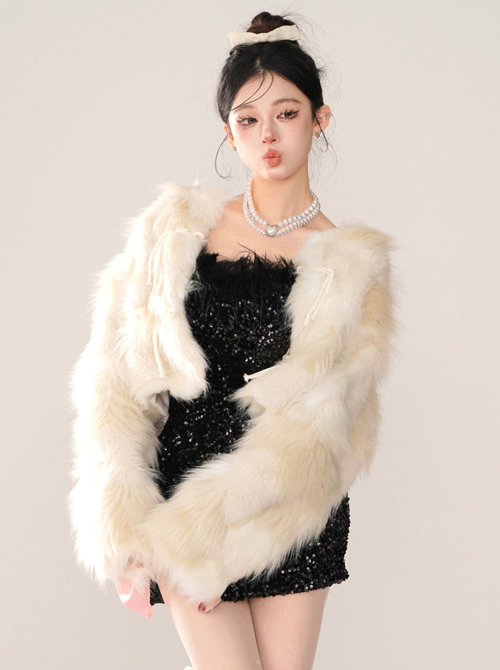この愛らしいミルクボリュームファーショートコートは、この冬の暖かさとスタイリッシュさを兼ね備えた一枚です。上質な素材を使用し、柔らかく快適な着心地を実現。フェイクファーがラグジュアリーな雰囲気を添え、ショート丈がトレンド感をプラス。この素敵なコートで、暖かくキュートな装いを演出しましょう。