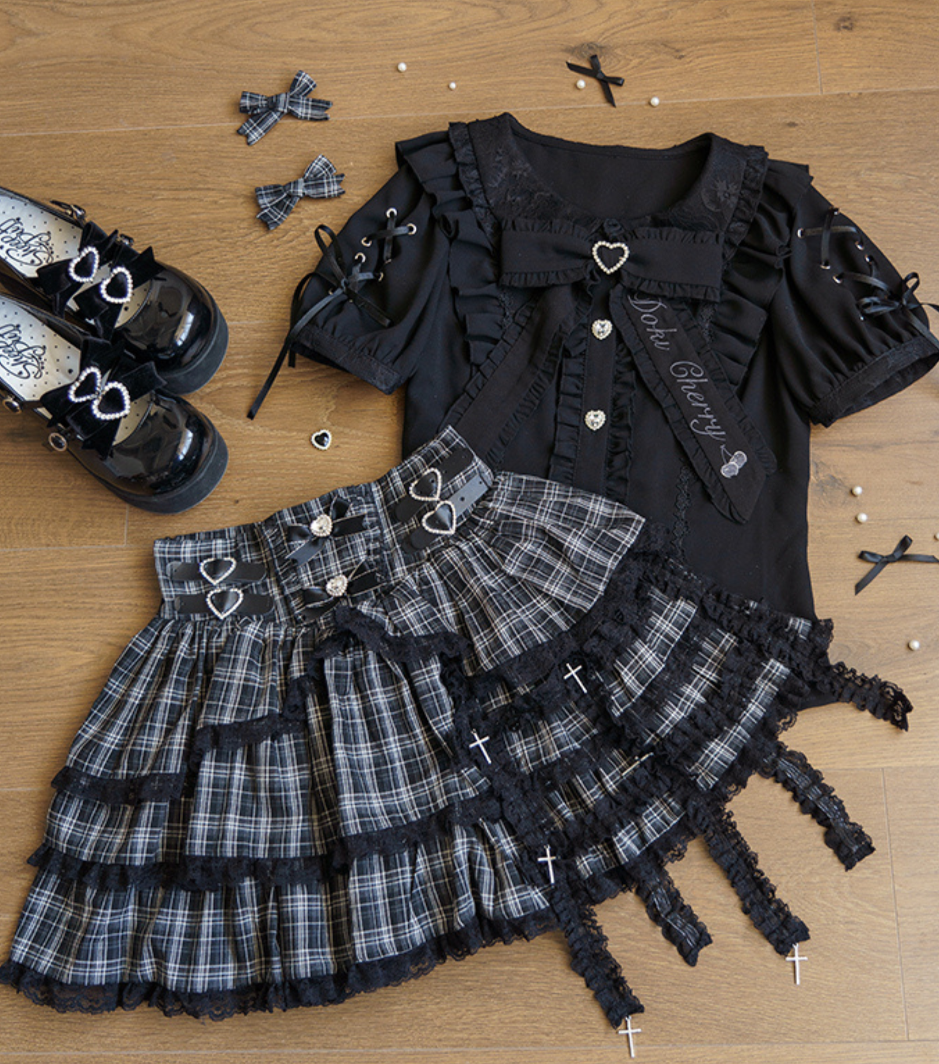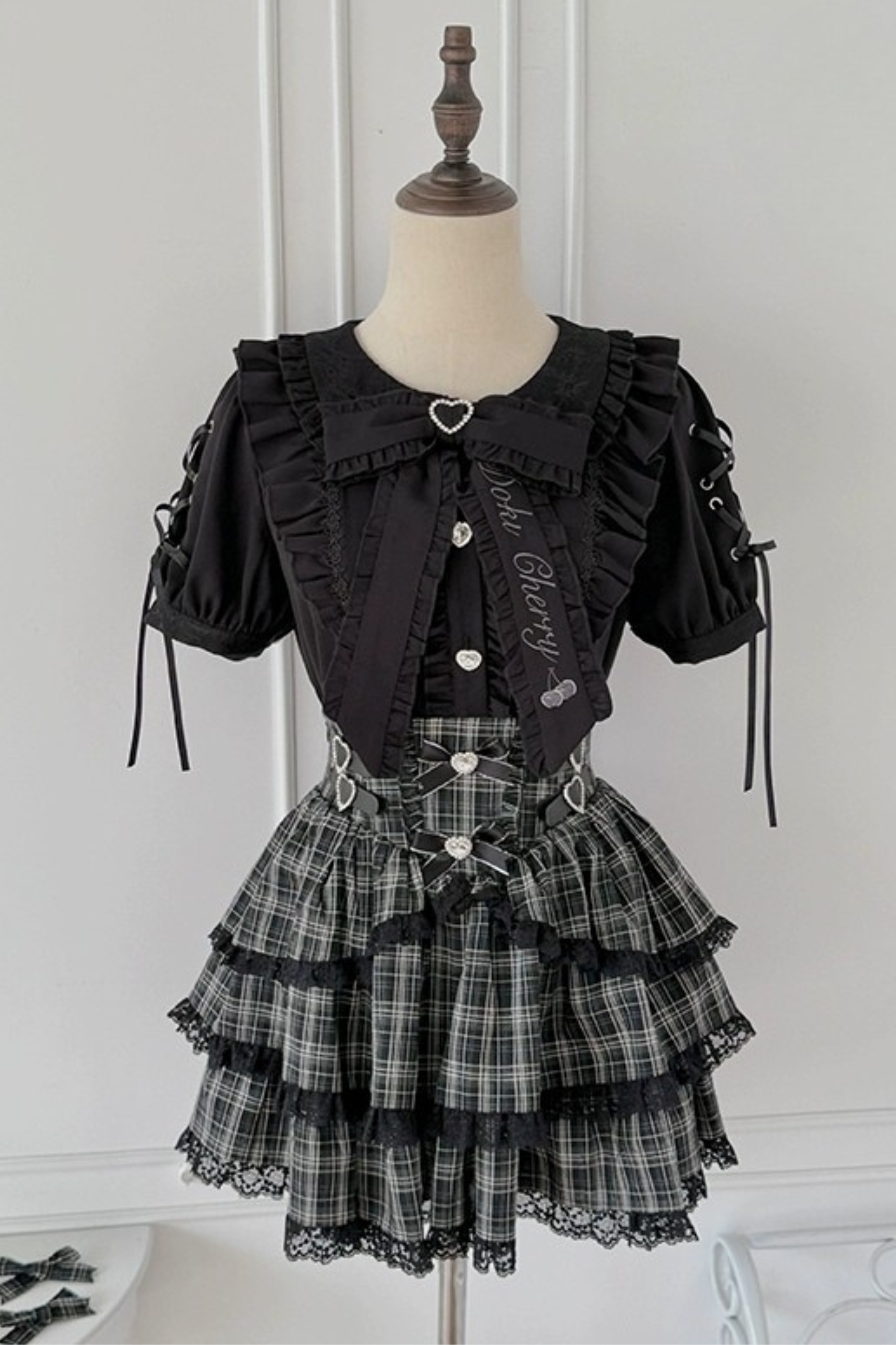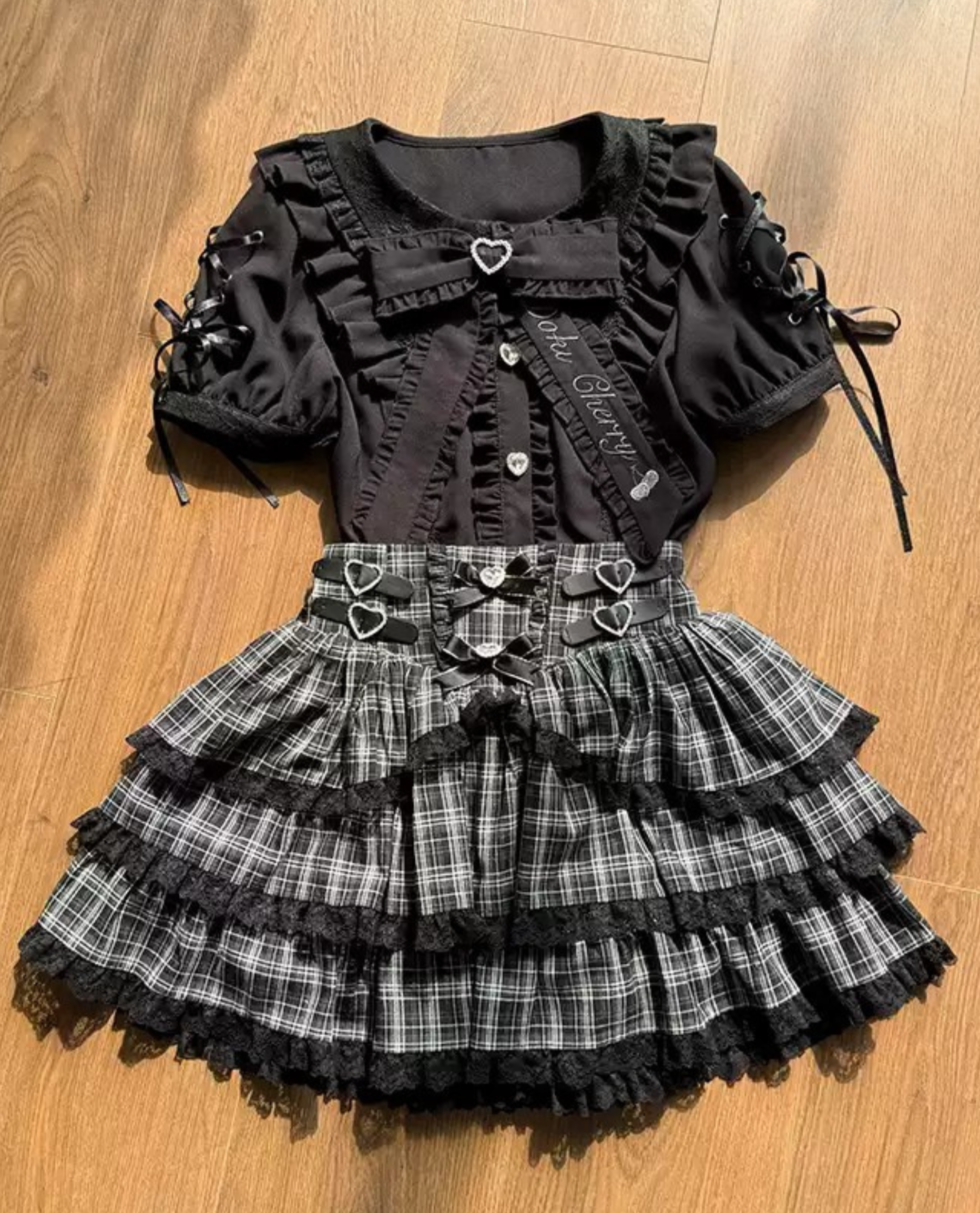 ❤︎予約商品 ブラックリボンシャツ+バードケージスカート マインコード❤︎ ⚠️こちらの商品は人気商品のためお届けまで2ヶ月ほどかかる場合がございます。