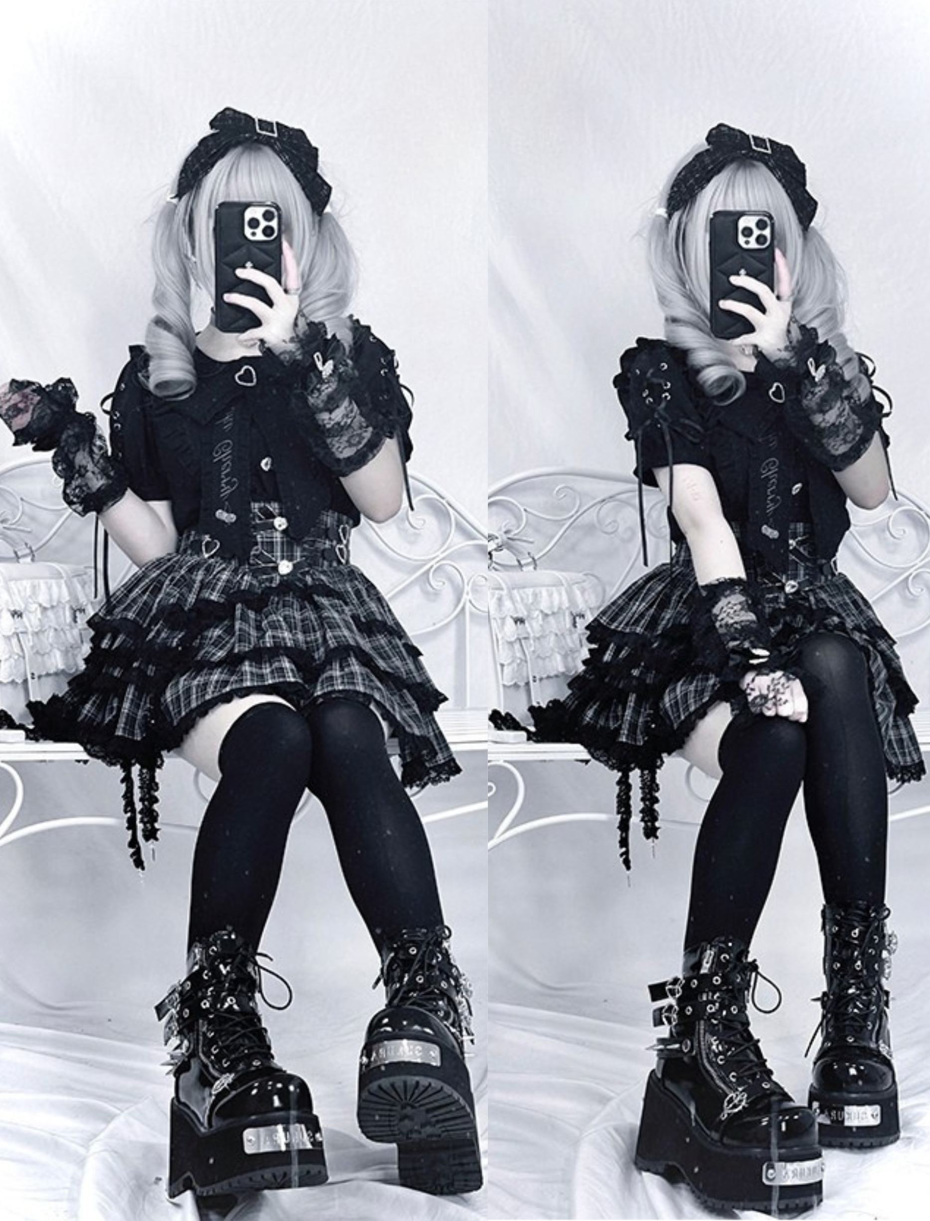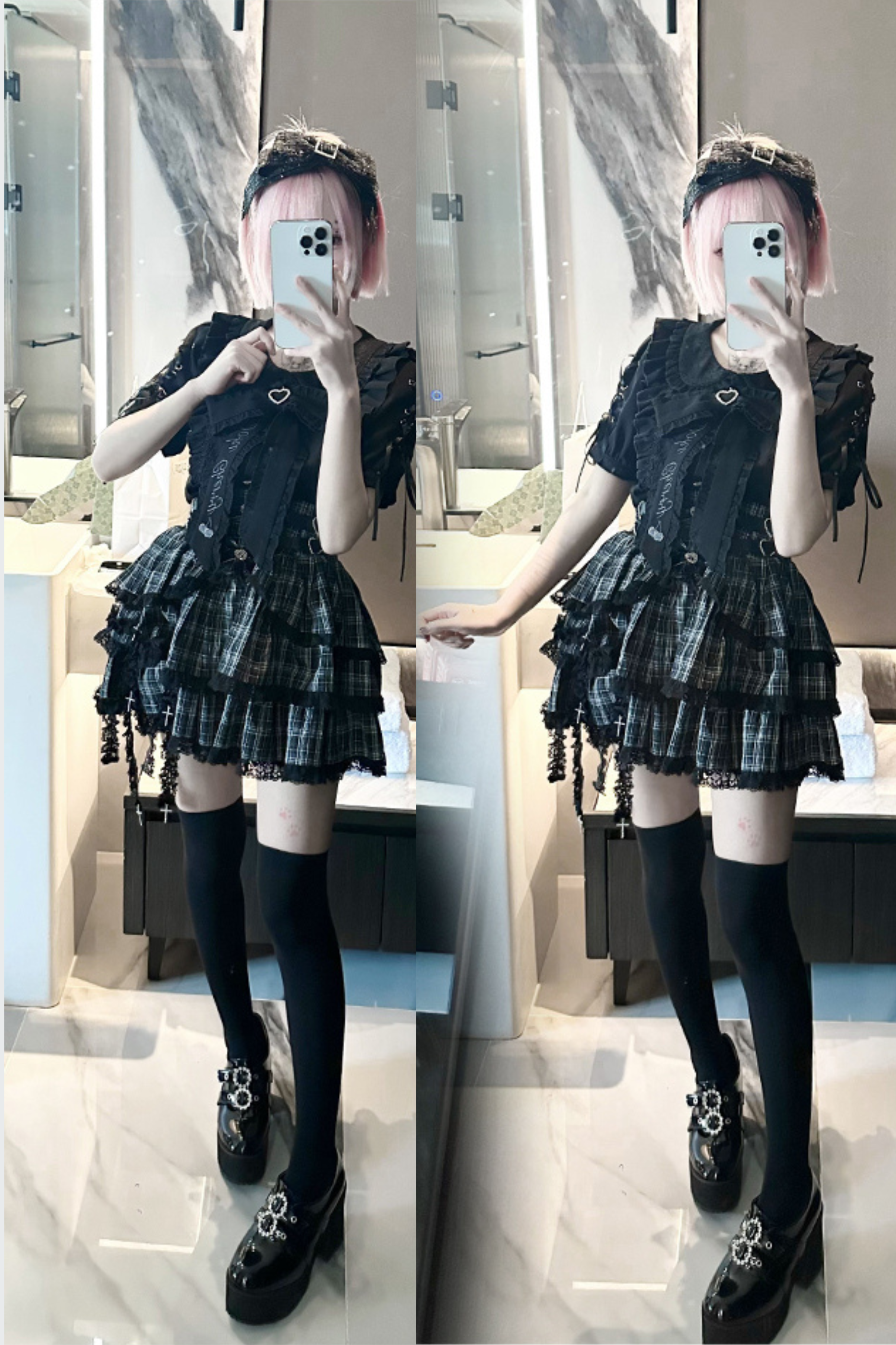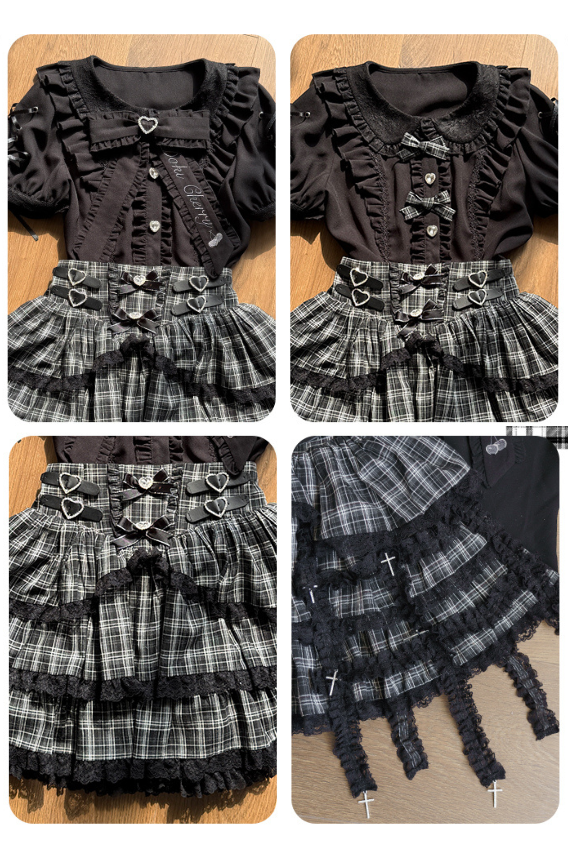 ❤︎予約商品 ブラックリボンシャツ+バードケージスカート マインコード❤︎ ⚠️こちらの商品は人気商品のためお届けまで2ヶ月ほどかかる場合がございます。