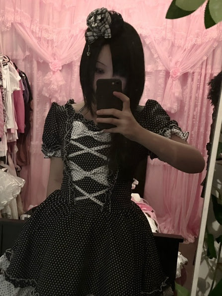 黒と白のオールドスクールロリータファッションドレス蝶結びロリータJSKセット