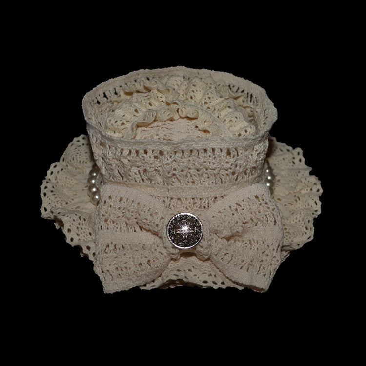 ミニハットデザイン 蝶結び ビーズ装飾 ベージュ