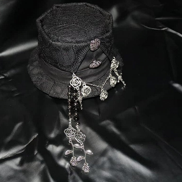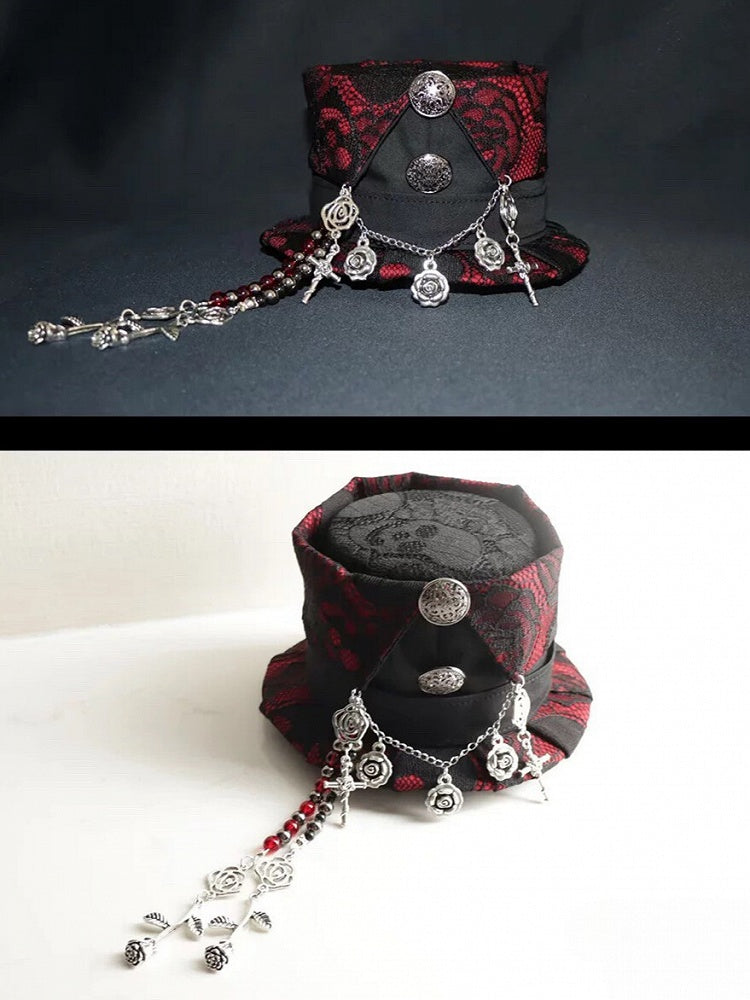 ブラック/レッド ロゼット デザイン ビーズ チャーム ミニ ハット