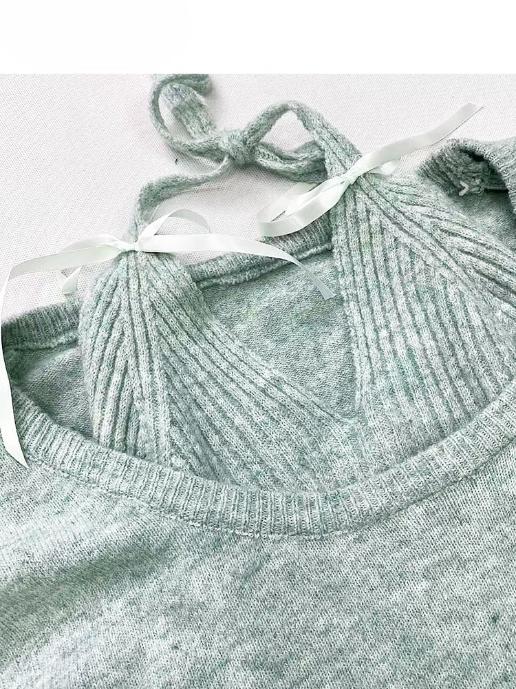 ミントグリーンのホルターネックフェイクツーピースニットセーターで、スタイリッシュでキュートな装いを演出しましょう!ホルターネックデザインとフェイクツーピース風のニットセーターは、どんなコーディネートにも華やかさをプラスします。柔らかなニット素材で仕立てられており、着心地の良さとファッション性を兼ね備えています。遊び心と愛らしさを兼ね備えた、愛らしいルックにぴったりです。