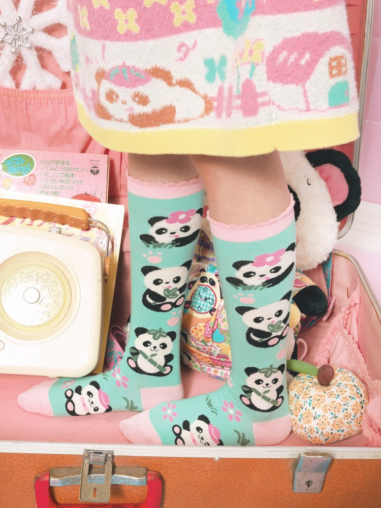 ミントグリーンのパンダカーフソックス